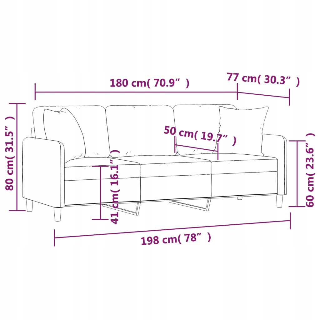 - Общие размеры: 198 х 77 х 80 см (Ш х Д х высота)