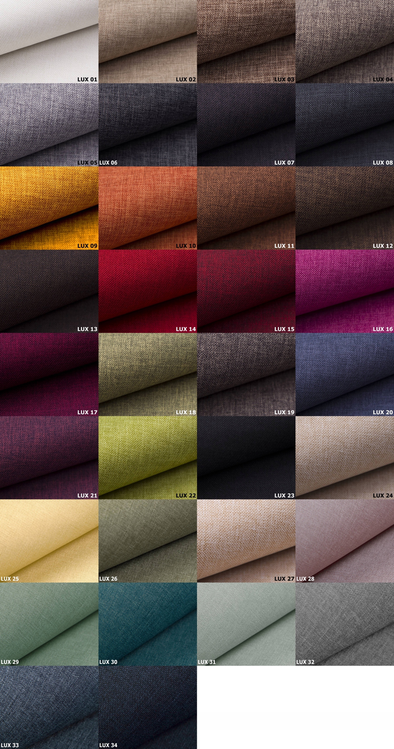 Ткань LUX, чрезвычайно устойчивая к истиранию и катышкам, доступна в более чем двадцати ярких цветах. Приятный на ощупь, универсальный: