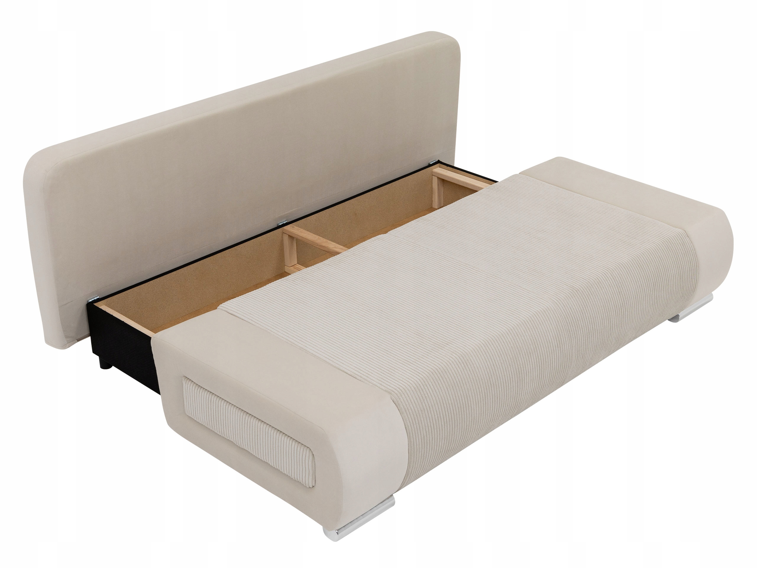 Диван со спальной функцией — идеальное решение для людей, которые ищут многофункциональную мебель. Дополнительное удобство — контейнер, в котором можно хранить постельное белье и подушки. Диван является автономным (спинка покрыта тканью), поэтому его можно разместить в любом месте комнаты.