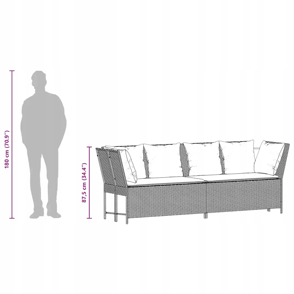 PE Садовый диван из ротанга, Бежевый, 233x68,5x87,5 см