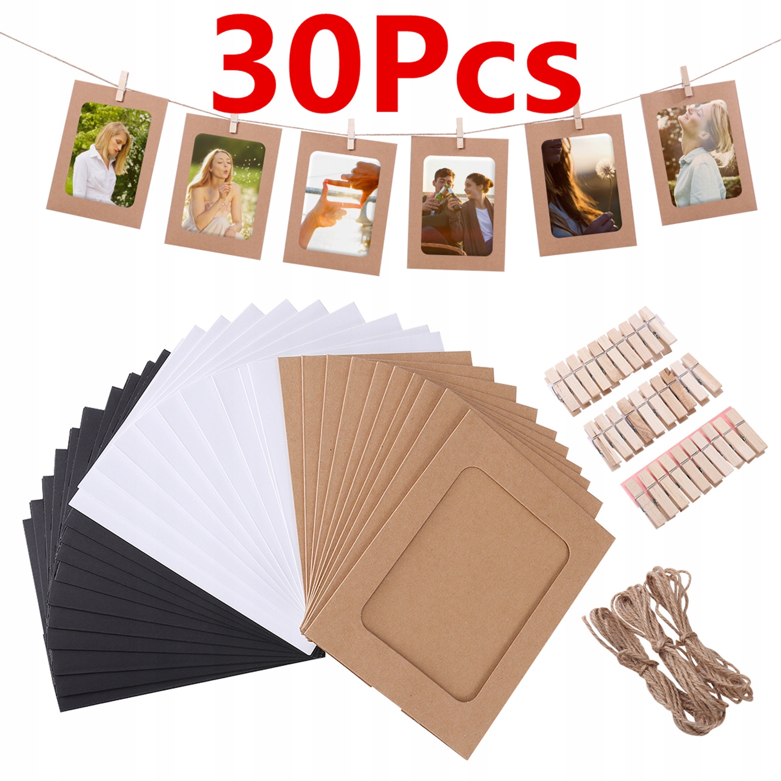 1. Список из 30 кусочков подвесных рам для оберточной бумаги с веревками и зажимами.