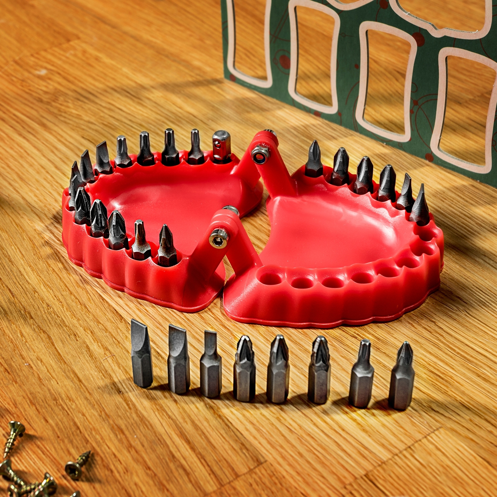 Сделанные своими руками челюсти не обязательно должны быть скучными или серьезными, особенно с нашей челюстью, сделанной своими руками :) Главная вмещает до 28 бит, по 14 в нижней и верхней челюсти, чтобы иметь под рукой самые популярные насадки с плоской или крестовой отверткой, винтами Torx и переходником/переходником для торцового ключа. Jaw — это не только практичный набор самых популярных насадок для отверток, но и веселый и позитивный органайзер, который эффективно поможет вам контролировать беспорядок. Благодаря этому у него будут все необходимые данные в одном месте и доступные в любое время, все, что вам нужно сделать, это открыть рот....эхх челюсть ;)