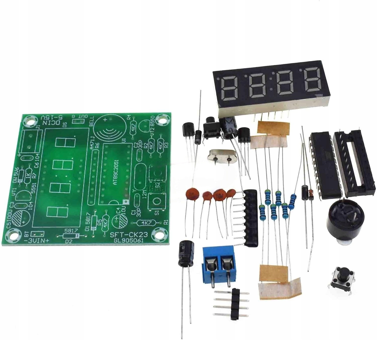 Этот набор электронных часов своими руками основан на однокристальном микроконтроллере и предлагает широкий спектр функций, связанных со временем, что делает его идеальным как для энтузиастов электроники, так и для новичков. По умолчанию он отображает часы и минуты, поддерживает функции секундомера и обратного отсчета, двойной будильник и включает внутренние часы с регулируемой частотой. Комплект необходимо собирать вручную, что помогает пользователям улучшить свои навыки пайки при создании функциональных цифровых часов.
