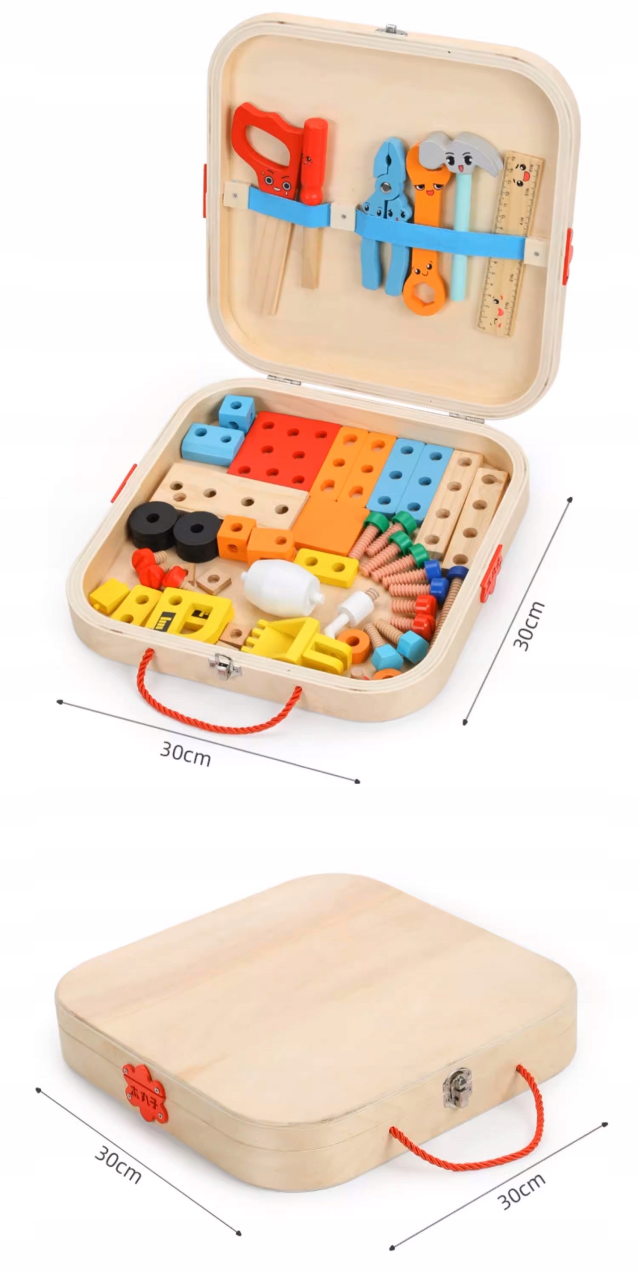 ⭐Прочный ящик для инструментов изготовлен из высококачественной древесины, что гарантирует долговечность и безопасность во время игры. Каждый инструмент тщательно изготовлен и имеет реалистичную форму, что делает игру еще более аутентичной.
