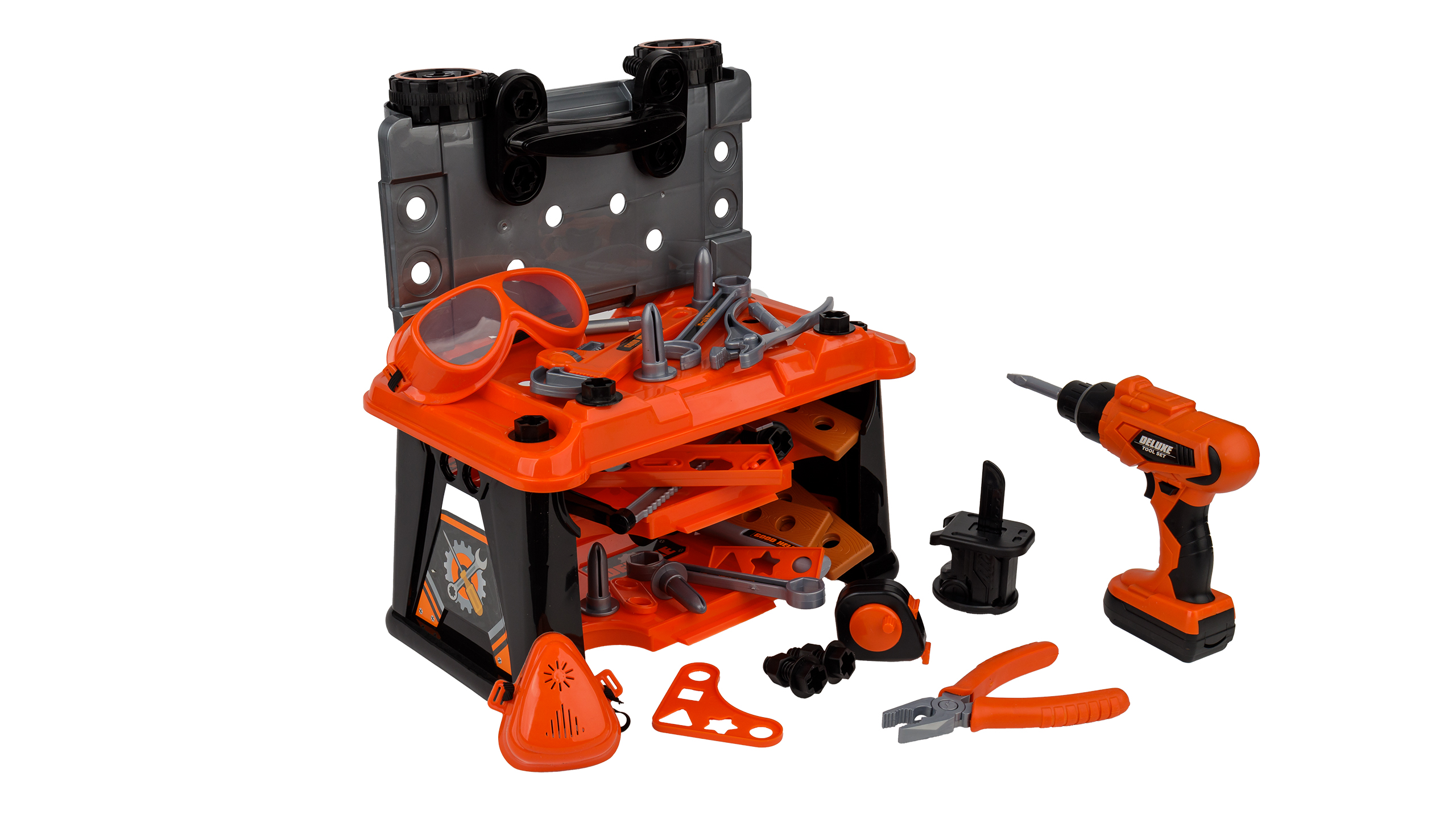 Мастерская своими руками в чемодане поможет быстро навести порядок, а ребенок сможет взять ее с собой. его повсюду! Благодаря колесам и ручке в чемодане набор сможет перевезти даже самый маленький любитель DIY.
