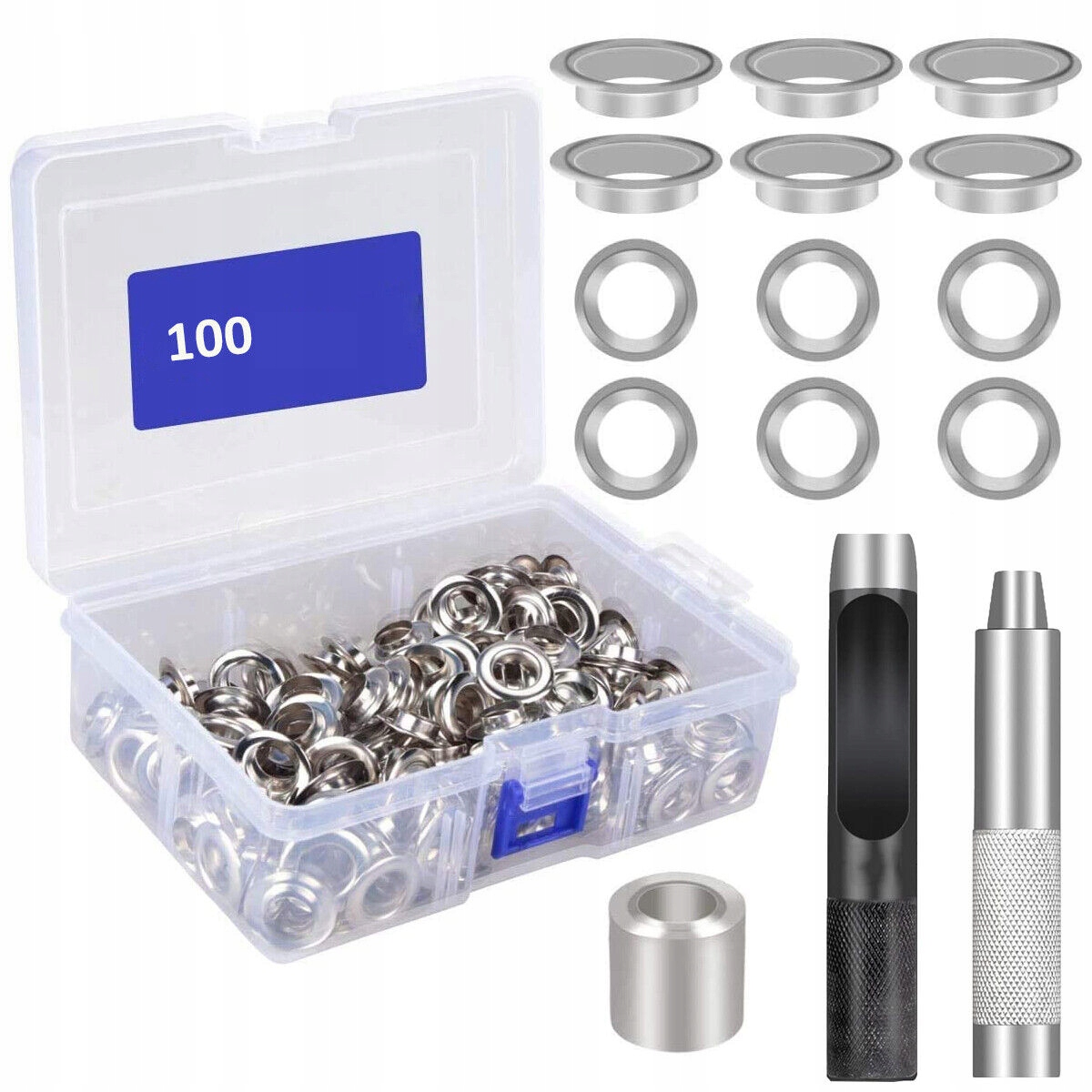✅В комплект входит: b > В комплект втулок входит резак для отверстий, соответствующая оправка, 100 комплектов втулок (каждый комплект включает 1 втулку и 1 шайбу), а также коробку для хранения.