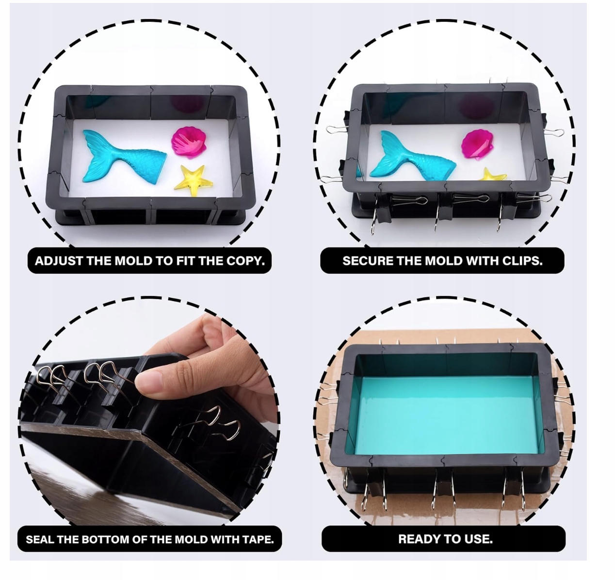 - Универсальность — комплект формовочного корпуса можно комбинировать с дополнительными комплектами для создания более высоких или широких рам. Чтобы надежно соединить наборы, вы можете использовать зажимы или пистолет для горячего клея. Это делает его идеальным для создания форм из силиконовой смолы, форм для мыла и форм для свечей различной ширины и высоты.
