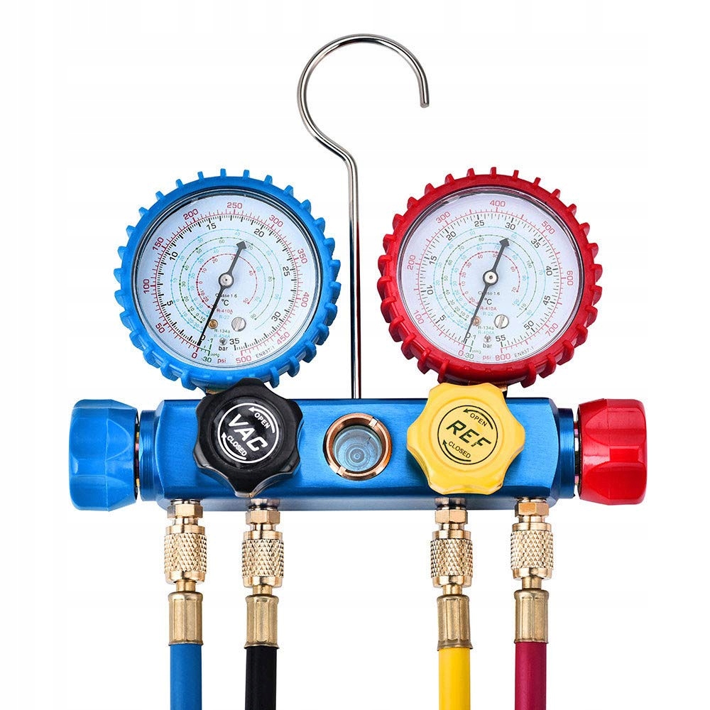Широкий спектр применения — профессиональный манометр с 4-ходовым коллектором для кондиционеров с хладагентами R134A, R410A и R22. Предназначен для зарядки переменным током, диагностических проверок, восстановления и эвакуации.