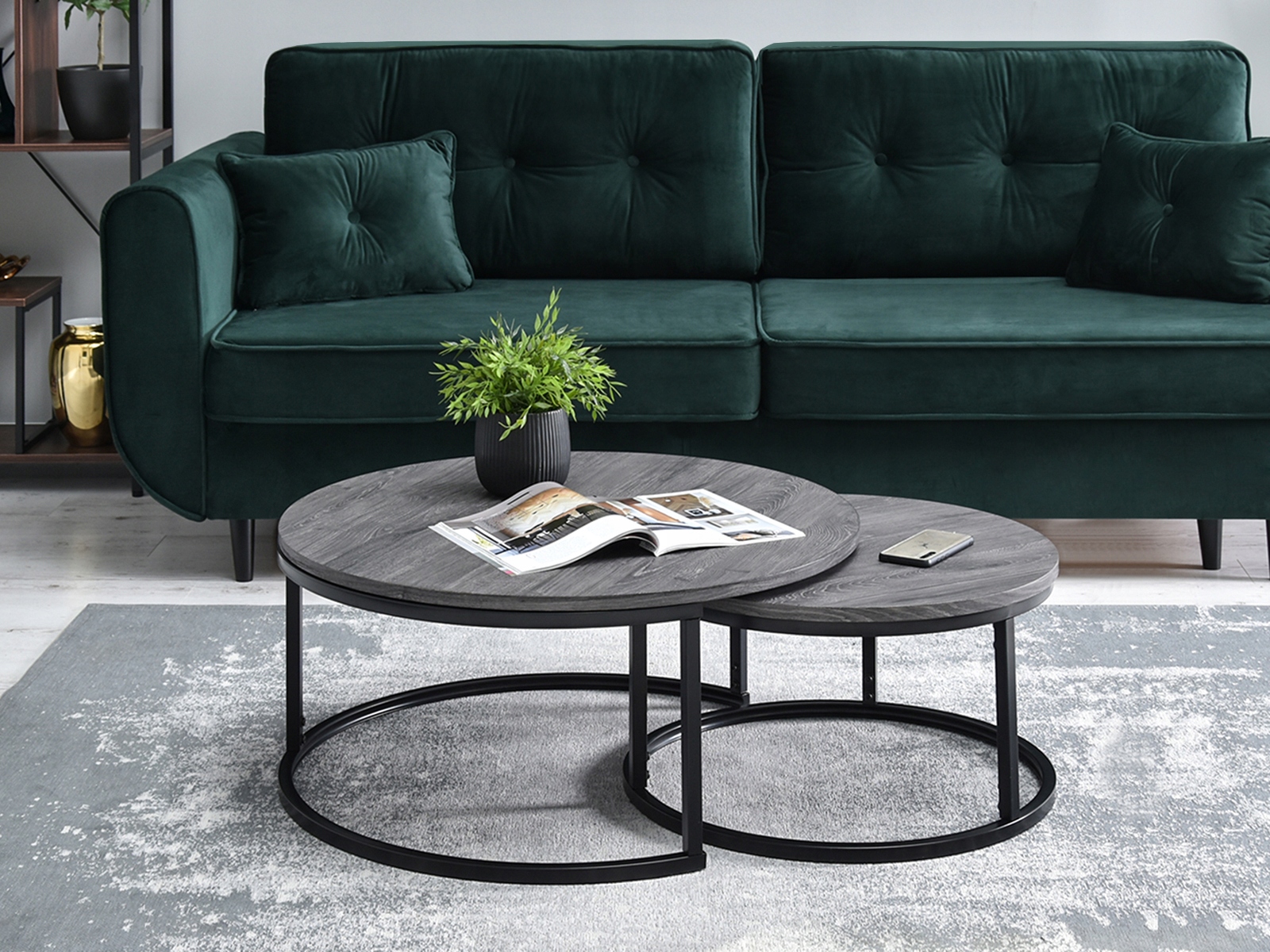 Очень целостный и вневременной набор столов KODIA в другой цветовой версии. Благодаря разным размерам изделия можно свободно комбинировать и создавать композиции, которые удовлетворят даже самых требовательных из вас. Основание мебели черного цвета с порошковым покрытием благодаря своей очаровательной круглой форме обеспечивает свободу композиции. Мебель отлично смотрится отдельно, но одинаково эффектна и, несомненно, очень практична, она будет хорошо сочетаться друг с другом – следует добавить, что в этом случае вы легко сможете задвинуть один стол под другой и таким образом получить целый, практичный стол. функции которого можно безопасно использовать в гостиной большего размера или в меньшем пространстве.