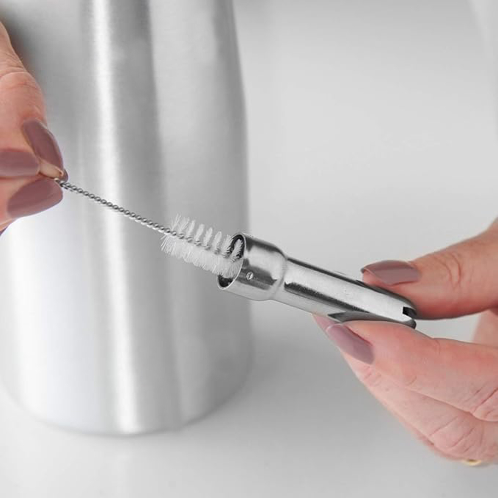 🎂АЛЮМИНИЕВАЯ КОНСТРУКЦИЯ: Изготовлен из матового пищевого алюминия, полностью безопасен. Эта машина для приготовления густых сливок долговечна и может использоваться годами. В комплект входит щеточка для облегчения чистки мелких деталей.