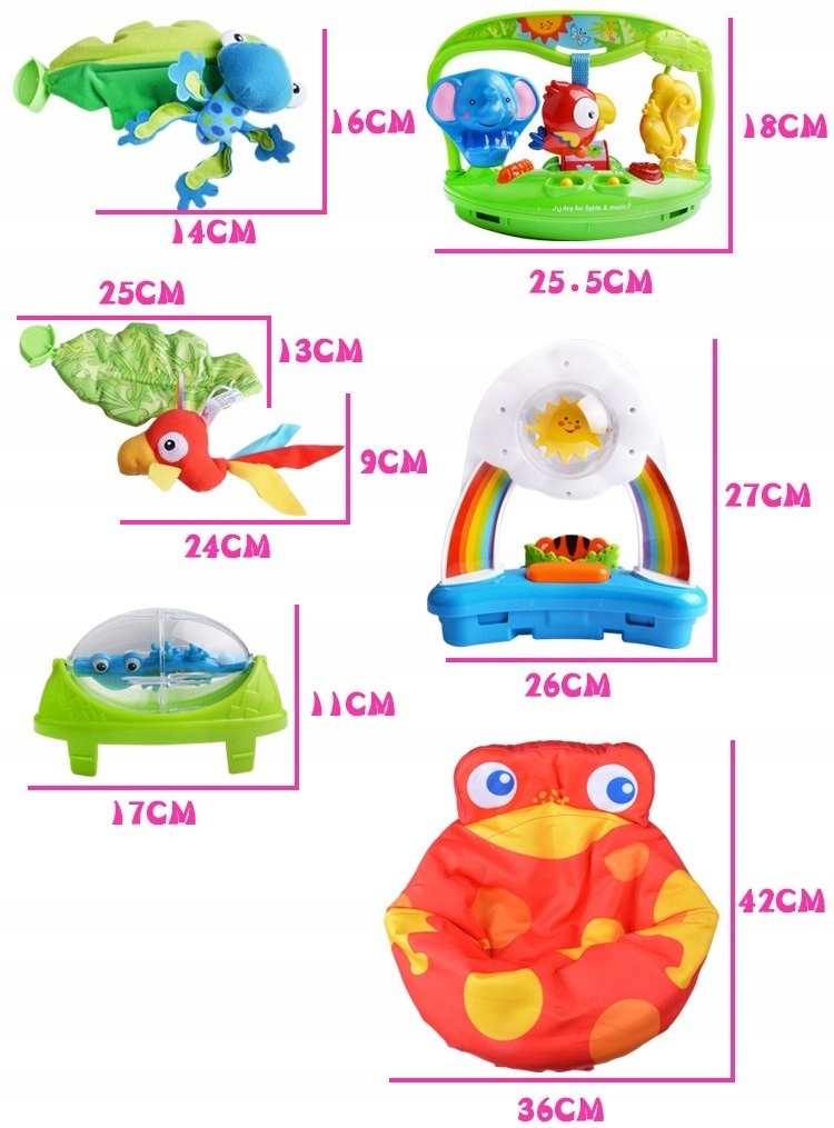 Игрушка имеет очень яркие цвета, которые привлекают внимание ребенка и доставляют массу удовольствия. Он поддерживает правильное развитие ребенка и развивает мануальные и моторные навыки. В игрушках изображены различные красочные животные, которые помогут развить осязание и зрение. Конструкция и пружины безопасны, поэтому ребенок может прыгать вверх и вниз. Он имеет удобное поворотное сиденье на 360 градусов, предоставляющее вашему ребенку доступ ко всем игрушкам вокруг него. Это способствует развитию моторики. Сиденье съемное и моющееся. Имеет трехступенчатую регулировку сиденья по высоте в зависимости от роста ребенка. Сложить для хранения легко.