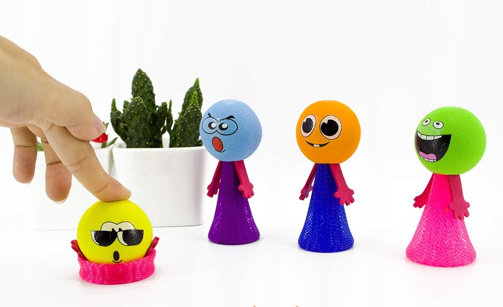 лицом, установленная на пружинистой основе. Просто прижмите эльфа пальцами к твердой поверхности и отпустите, и игрушка выстрелит, как из рогатки.