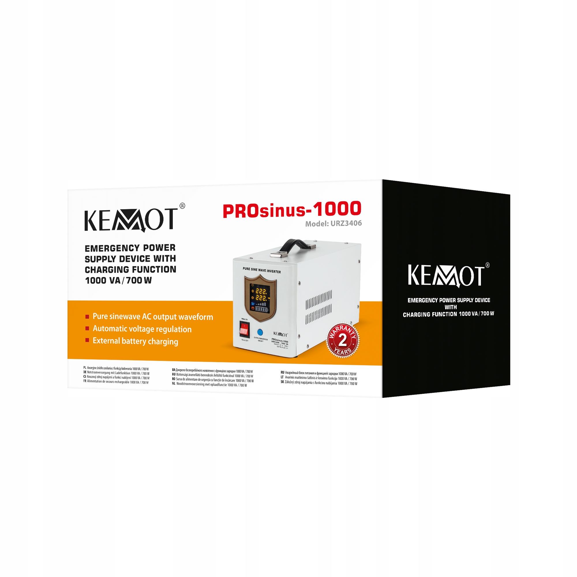Аварийные источники питания KEMOT PROSinus оснащены четким светодиодным дисплеем, отображающим текущий рабочий статус устройства. На дисплее вы можете проверить, среди прочего: входное напряжение, выходное напряжение и частота. Более того, вы можете быстро проверить уровень нагрузки и уровень заряда батареи