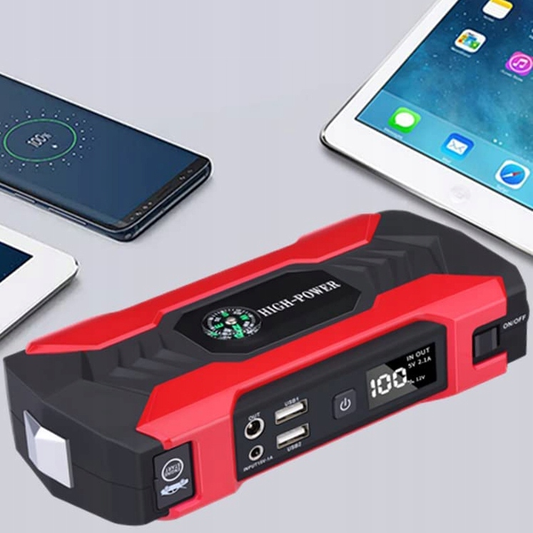 - Преимущества: Автомобильный молоток безопасности, индикатор оставшегося заряда, индикатор выходного напряжения, аварийное освещение, компас.