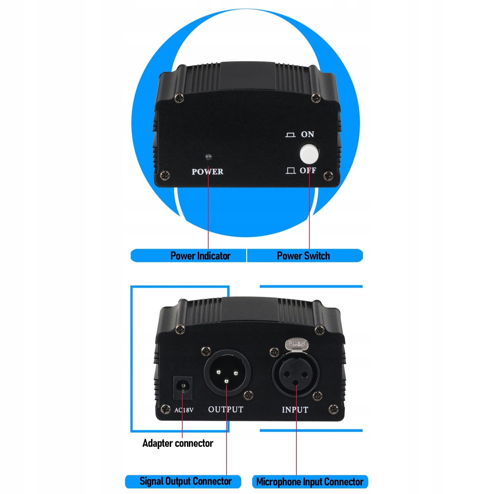 4. Работа по принципу Plug and Play: управлять источником питания конденсаторного микрофона очень просто: подключите кабель питания, подключите звуковое устройство и питание 48 В через кабель XLR и нажмите кнопку питания, чтобы начать.