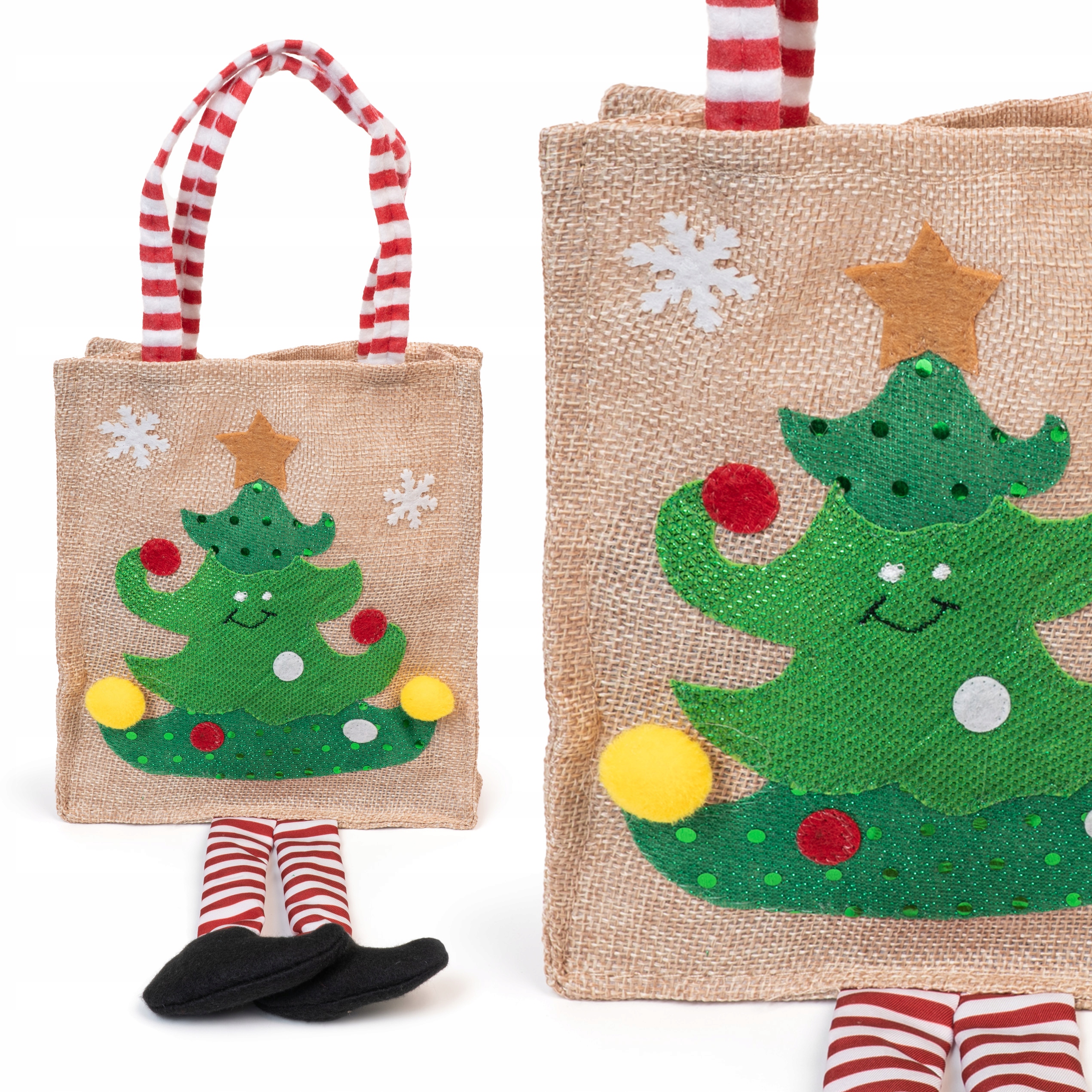 ДЖУТОВАЯ СУМКА 15х18,5см ДЛЯ ПОДАРКА НА РОЖДЕСТВЕНСКИЙ ПОКУПОК ЭКО РОЖДЕСТВЕНСКАЯ ЕЛКА