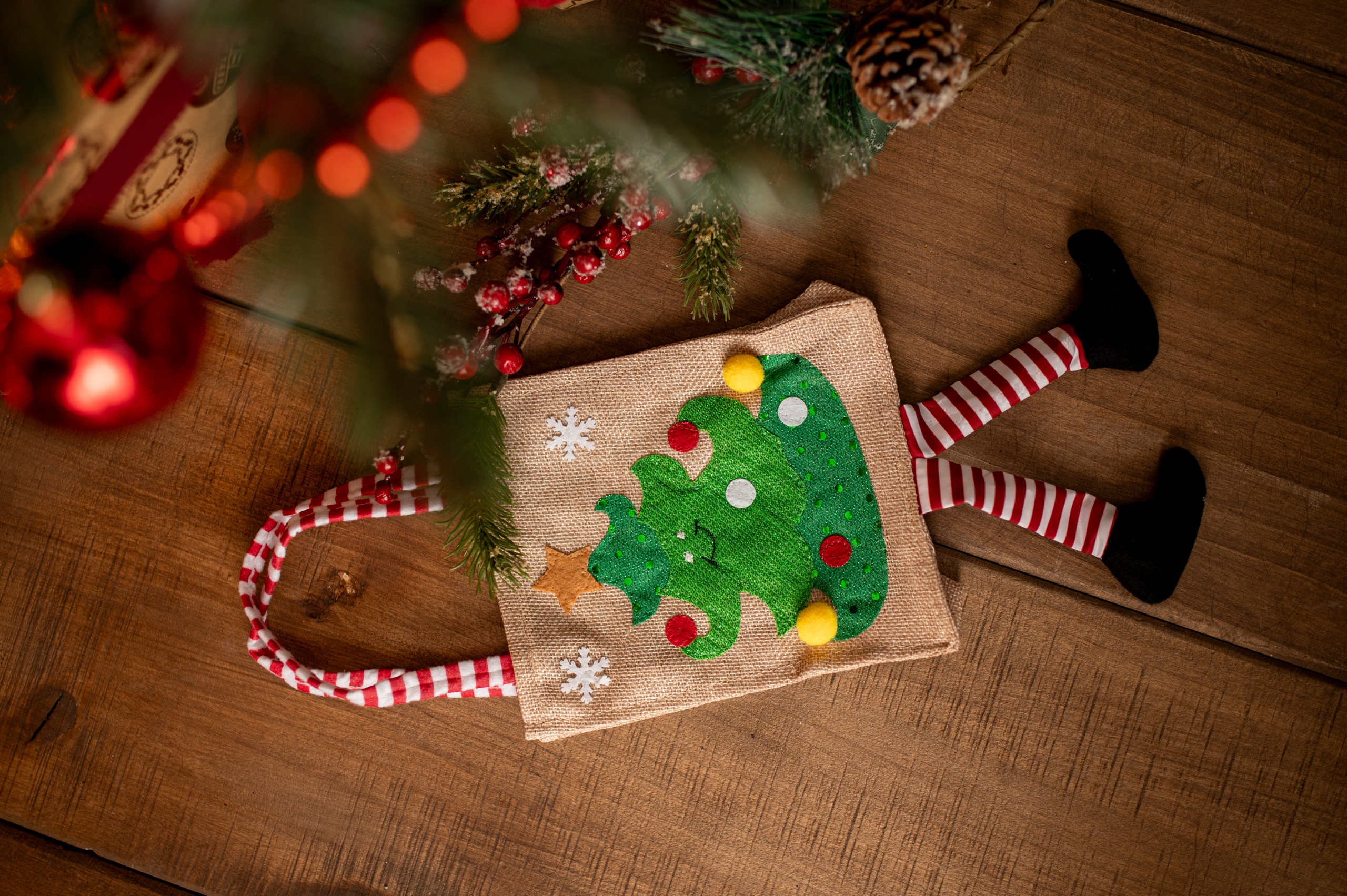 ❄️ Эта джутовая сумка с мотивом рождественской елки станет идеальным выбором для рождественских подарков и покупки