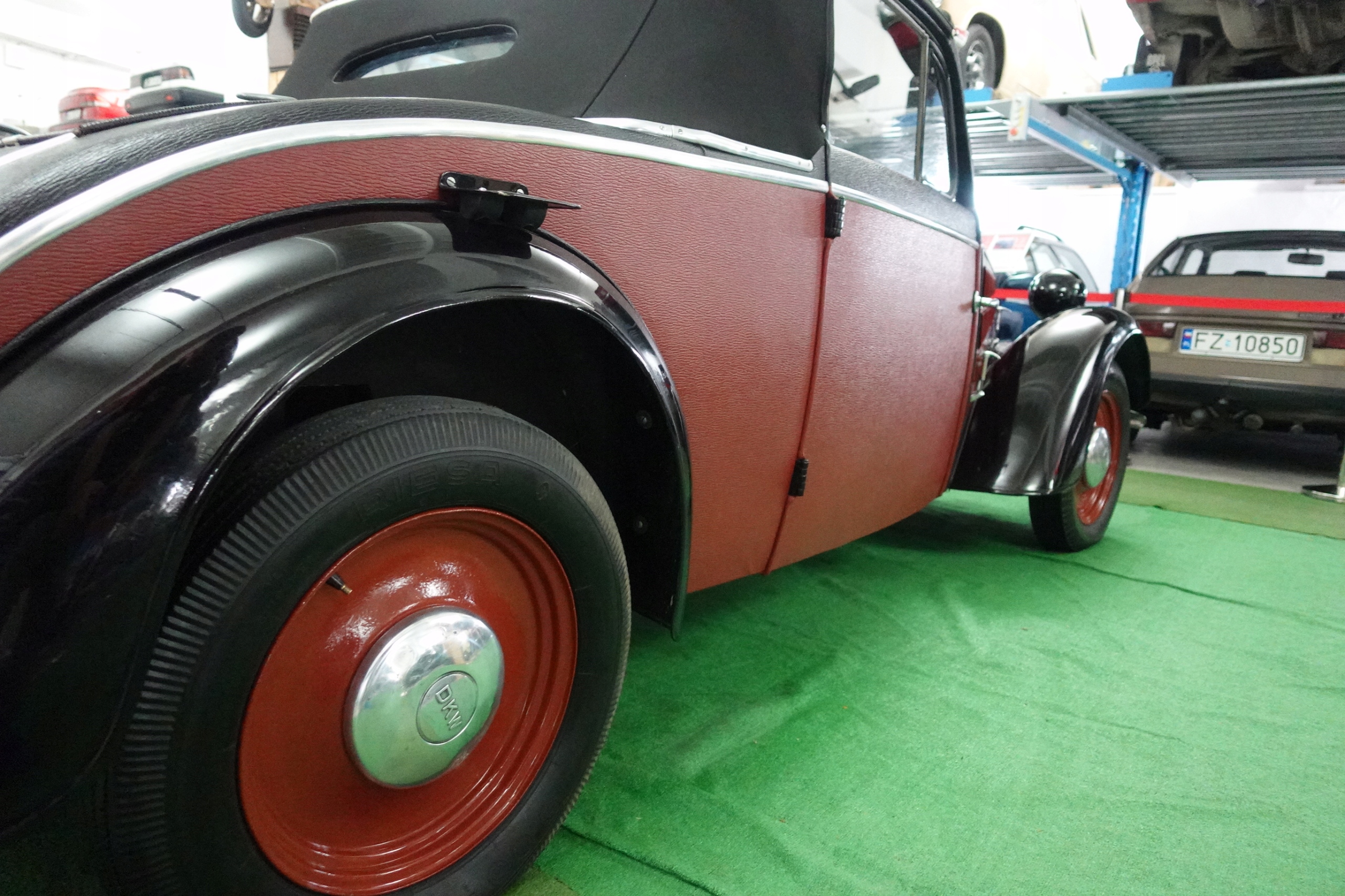 Мы предлагаем уникальный DKW F8 Cabrio 2+2 1940 года выпуска – автомобиль, прошедший комплексный профессиональный ремонт «с нуля» и сегодня выглядящий как нечто свежее из своей эпохи. Кузов в отличном состоянии, краска тщательно восстановлена ​​и ухожена, благодаря чему автомобиль производит впечатление как на ралли, так и во время неторопливой езды. Обивка полностью отреставрирована – комплектная, идеально выполненная, восстанавливающая аутентичную атмосферу интерьера и подчеркивающая элегантность салона 2+2.
