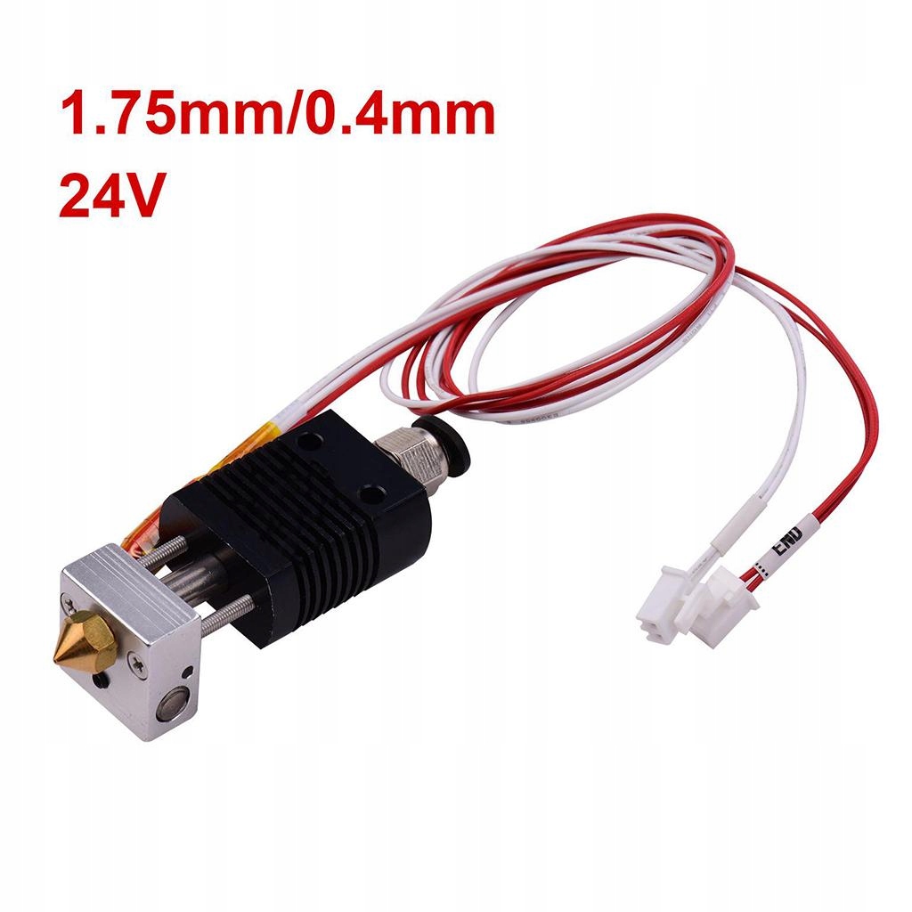 0,4 ​​мм сопло; размер волокна 1.75; алюминиевый нагревательный блок; Нагревательный кабель 24 В 40 Вт.