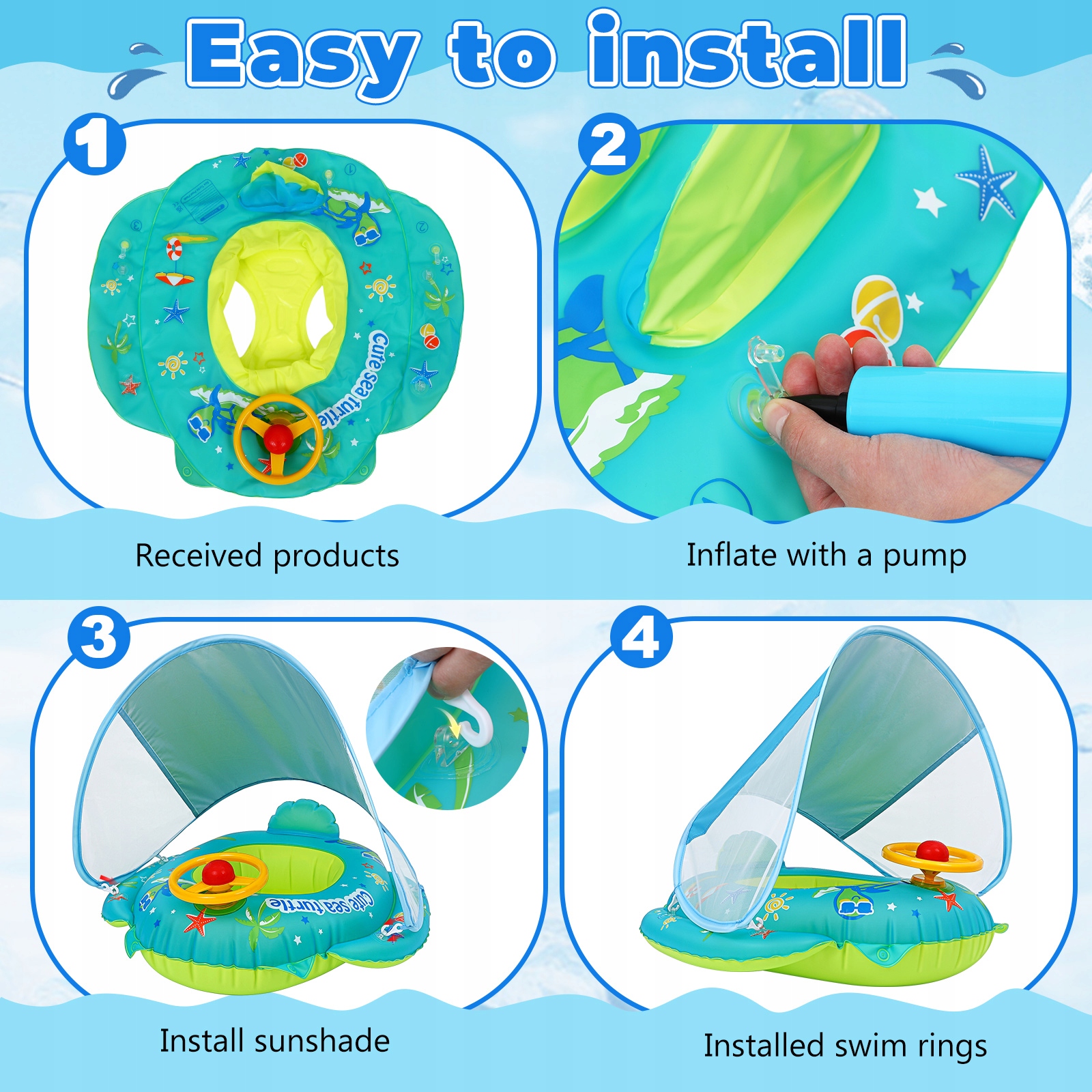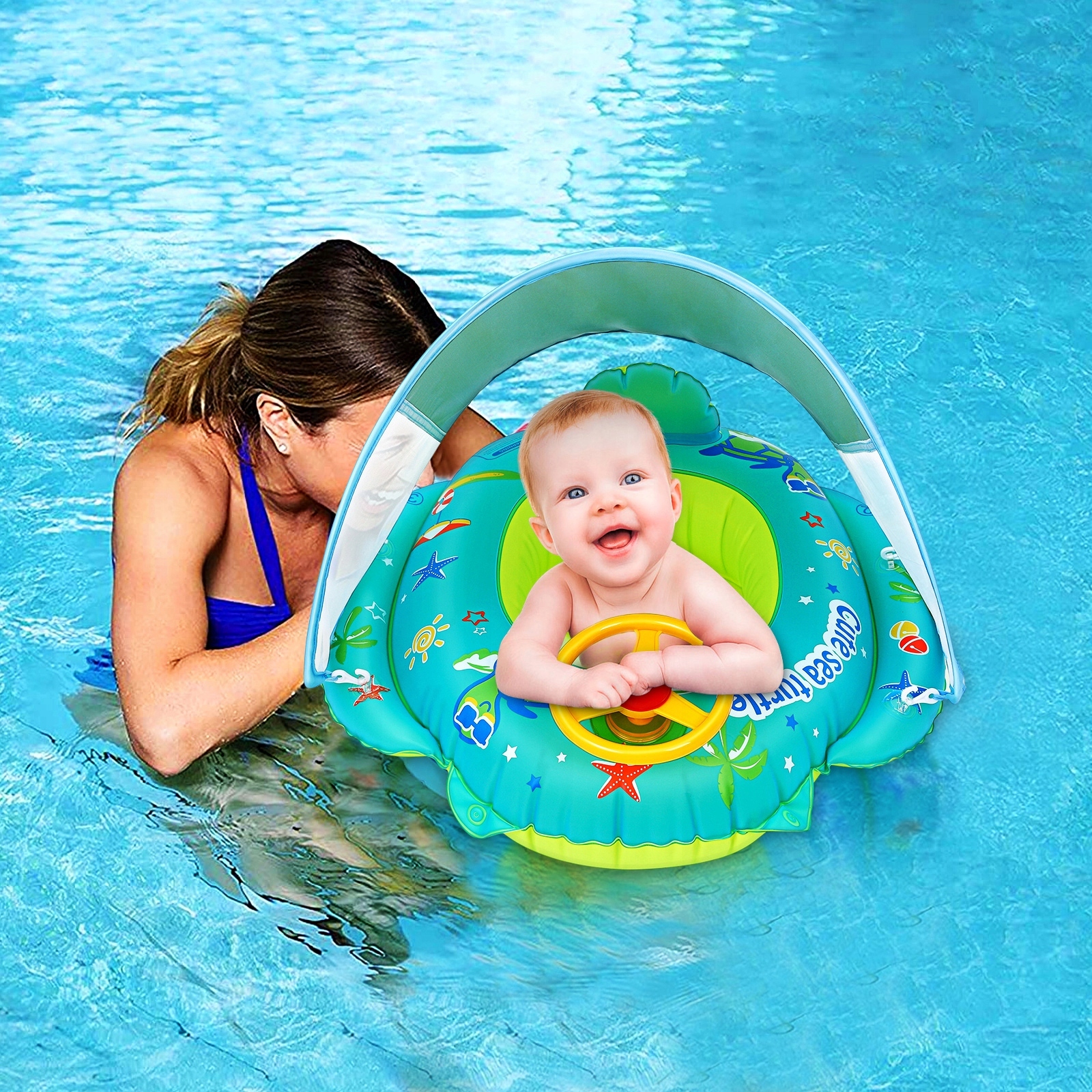 Для детей, плавающее сиденье с навесом - надувное плавательное колесо + насос + воздушный насос