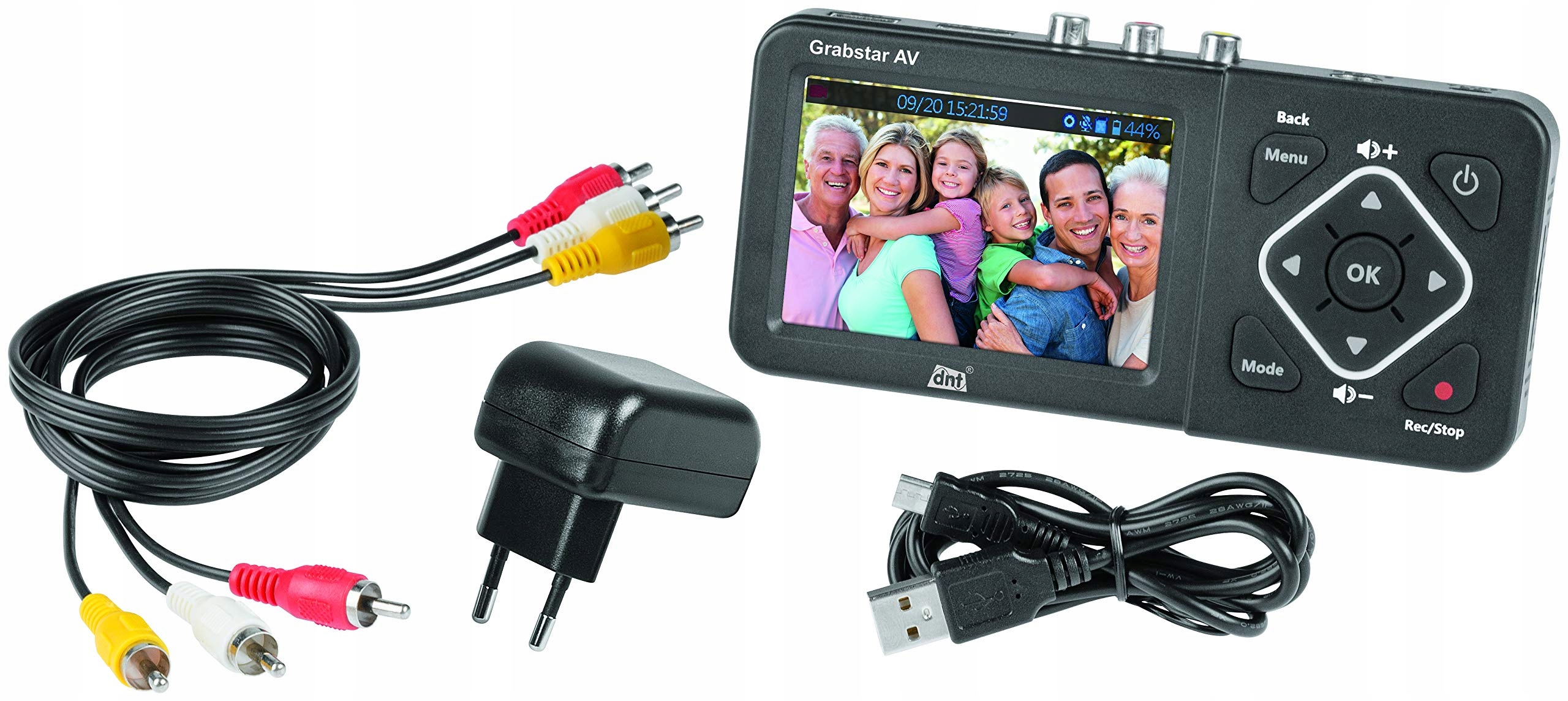 DNT Grabstar AV — это преобразователь видео, который позволяет архивировать аналоговые видеоисточники на USB- или SD-носители. Он имеет цветной дисплей диагональю 8,9 см (3,5") и встроенный динамик для воспроизведения звука. Поддерживаемые разрешения записи: 720 x 576 пикселей и 720 x 480 пикселей.