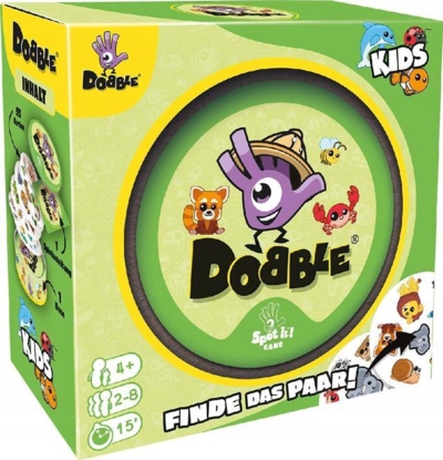 - В Dobble Kids вам нужно найти быстрее и заменить единственное животное, которое показано на двух картах. Не одурачить размер символов