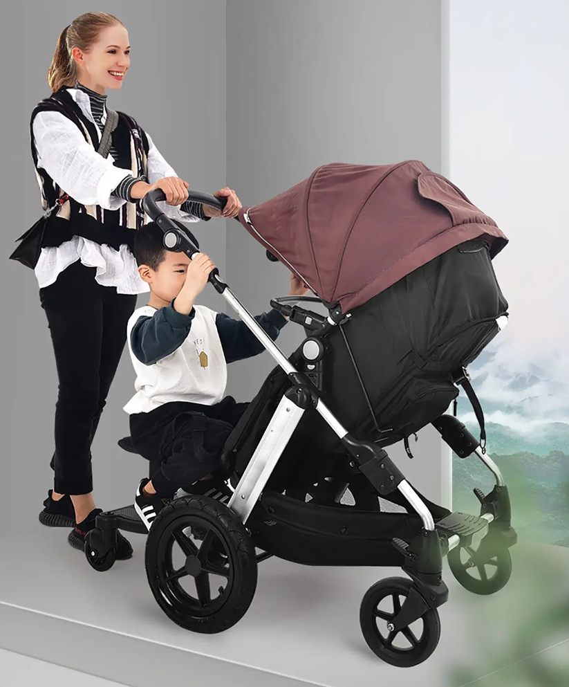 ▶ Гуляете с двумя детьми в одной коляске? Это возможно с дополнительной кроватью! Когда ребенок постарше устанет ходить, он может сесть или встать на буфет и продолжить вместе наслаждаться прогулкой