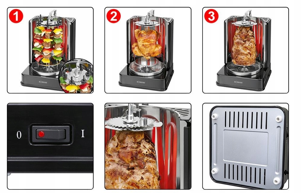 КЕБАБ-ГОРОДКА РОЛИК-ГРИЛЬ КУРИНЫЙ ШАШИЛЬ ШАШОЧКИ ДОНЕР ЭЛЕКТРИЧЕСКИЙ РИСТАНТ Bomann DVG 3006 DVG 3006