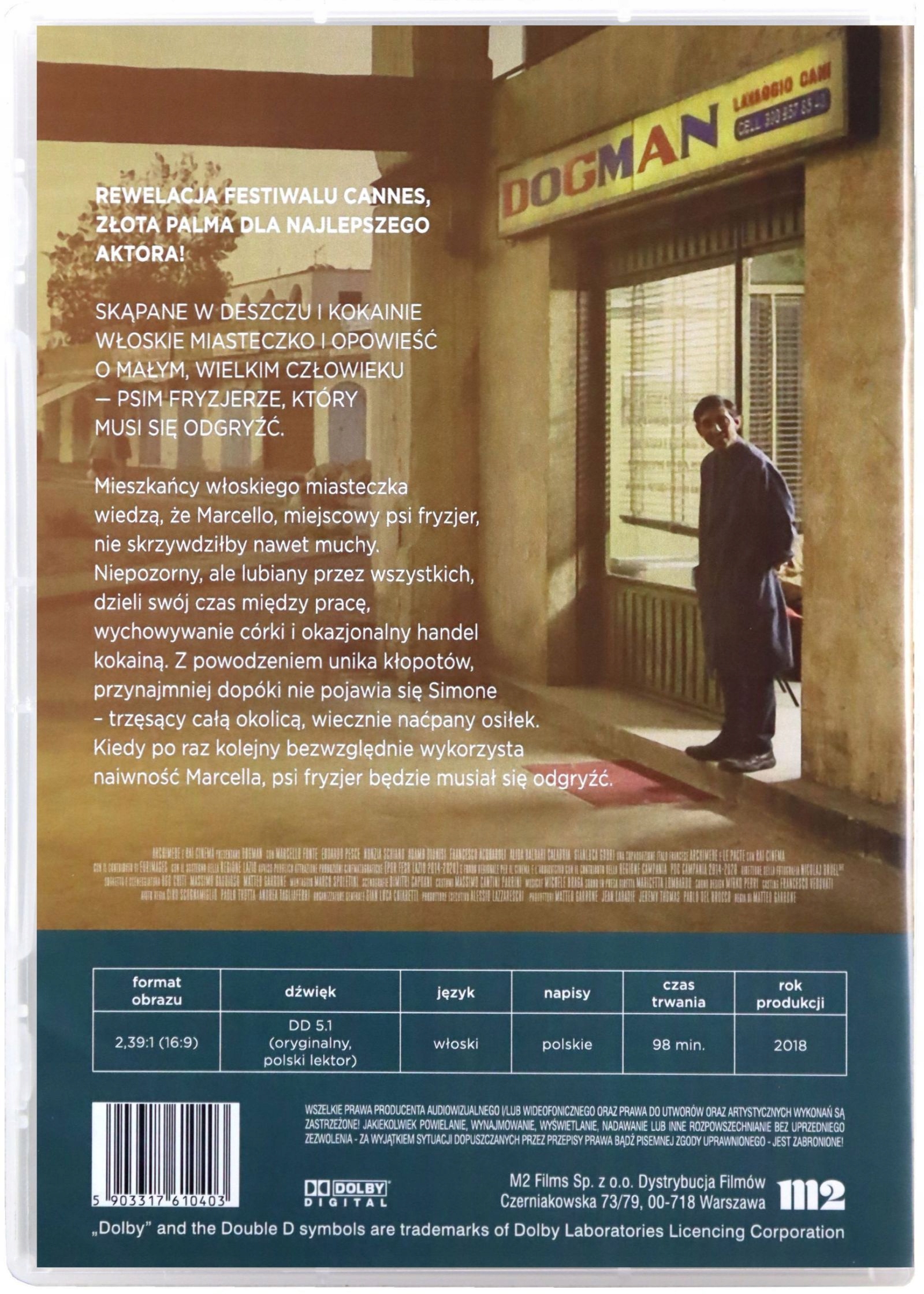 Откровение Каннского фестиваля, Золотая пальмовая ветвь за лучшую мужскую роль! Итальянский городок, залитый дождем и кокаином, и история о маленьком, большом человеке - собачьем парикмахере, которому приходится дать отпор.
