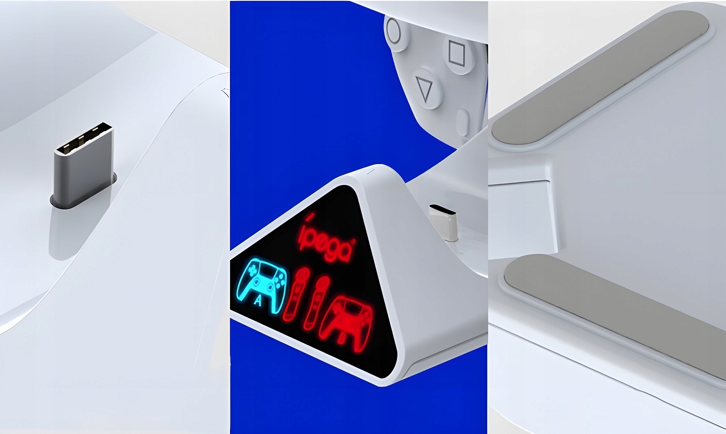 iPega P5011 — элегантный гаджет, позволяющий заряжать две панели DualSense и два контроллера PlayStation Move за один раз. очень удобный способ. Зарядное устройство оснащено портами USB-C и специальными разъемами, к которым вы можете легко подключить свои контроллеры. Благодаря этой док-станции вы забудете о громоздких клубках кабелей.