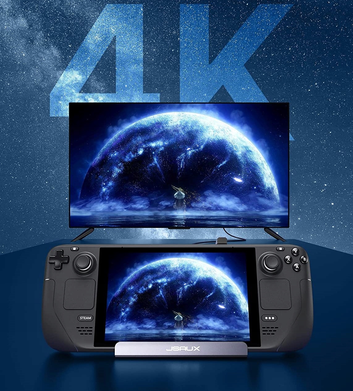 ��Выход HDMI 4K с частотой 60 Гц. Док-станция Steam Deck имеет выход HDMI 2.0 4K с частотой 60 Гц. Когда вы подключаете внешний монитор 4K, он обеспечивает более четкое и плавное изображение, поэтому вы можете наслаждаться визуальным праздником в играх.