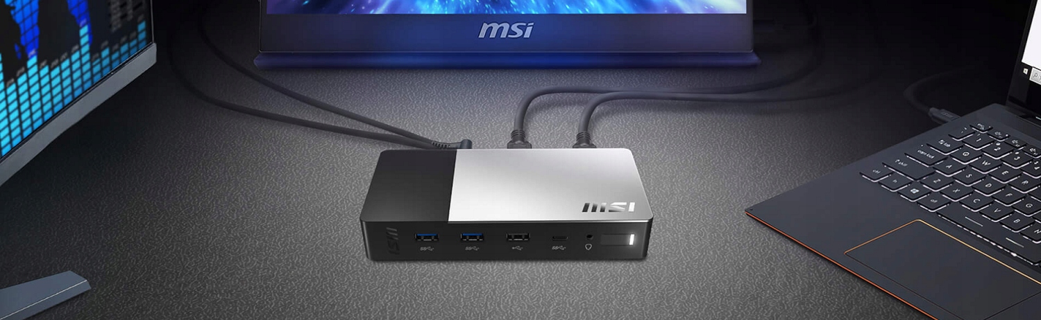 Док-станция MSI USB-C Gen 2 превратит ваш стол в интеллектуальную и чрезвычайно эффективную рабочую станцию. Просто нажмите кнопку питания, чтобы вывести ноутбук с несколькими подключенными к нему мониторами из режима ожидания.