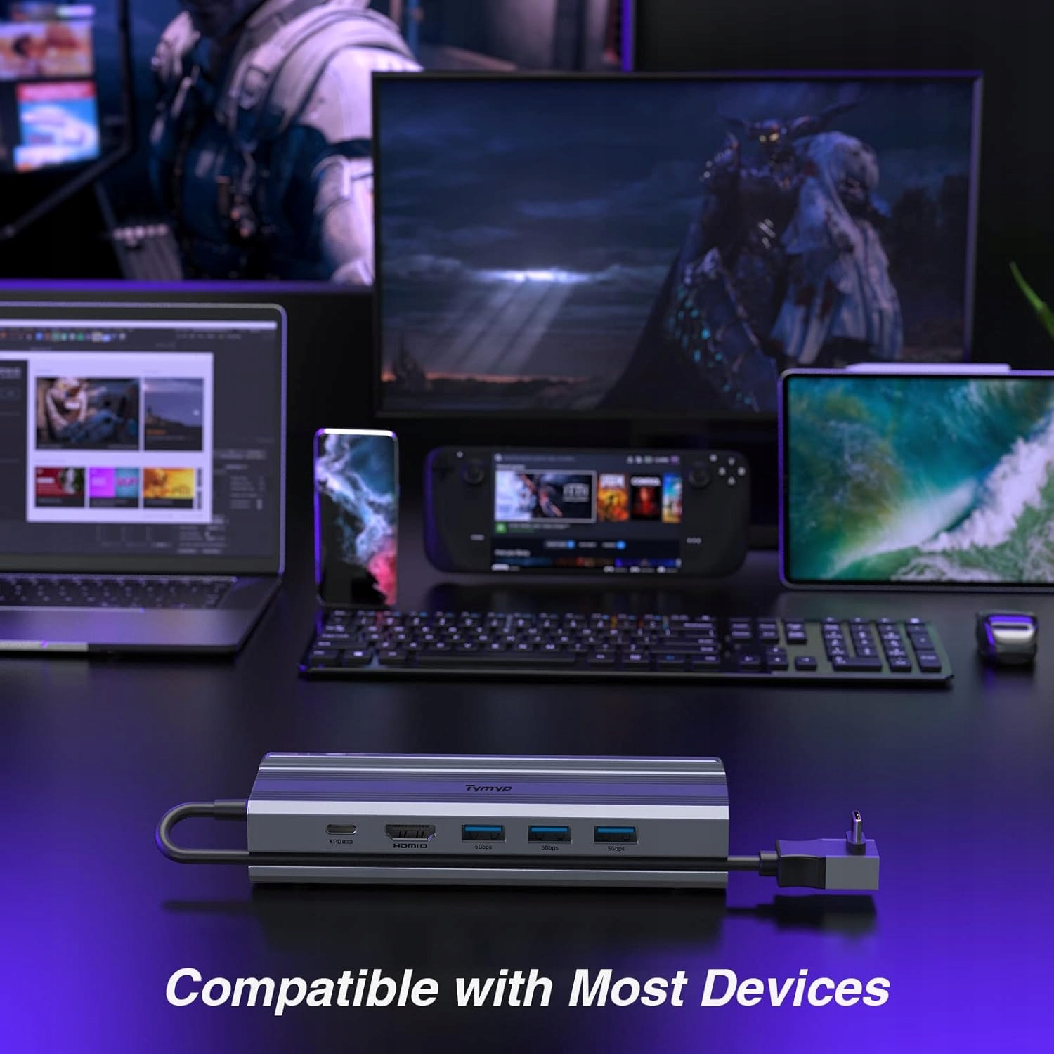 【Совместимость】Док-станция спроектирована с учетом паровой палубы, что позволяет вам открыть для себя новый способ игры с паровой палубой. Он также совместим с iPad и ноутбуками с портами USB-C.