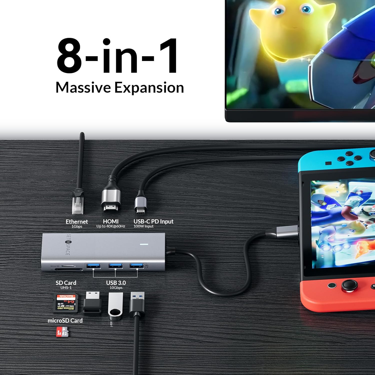 Док-станция 8 в 1 USB-C — 4K, 60 Гц, 100 Вт PD, 5 Гбит/с и Ethernet!