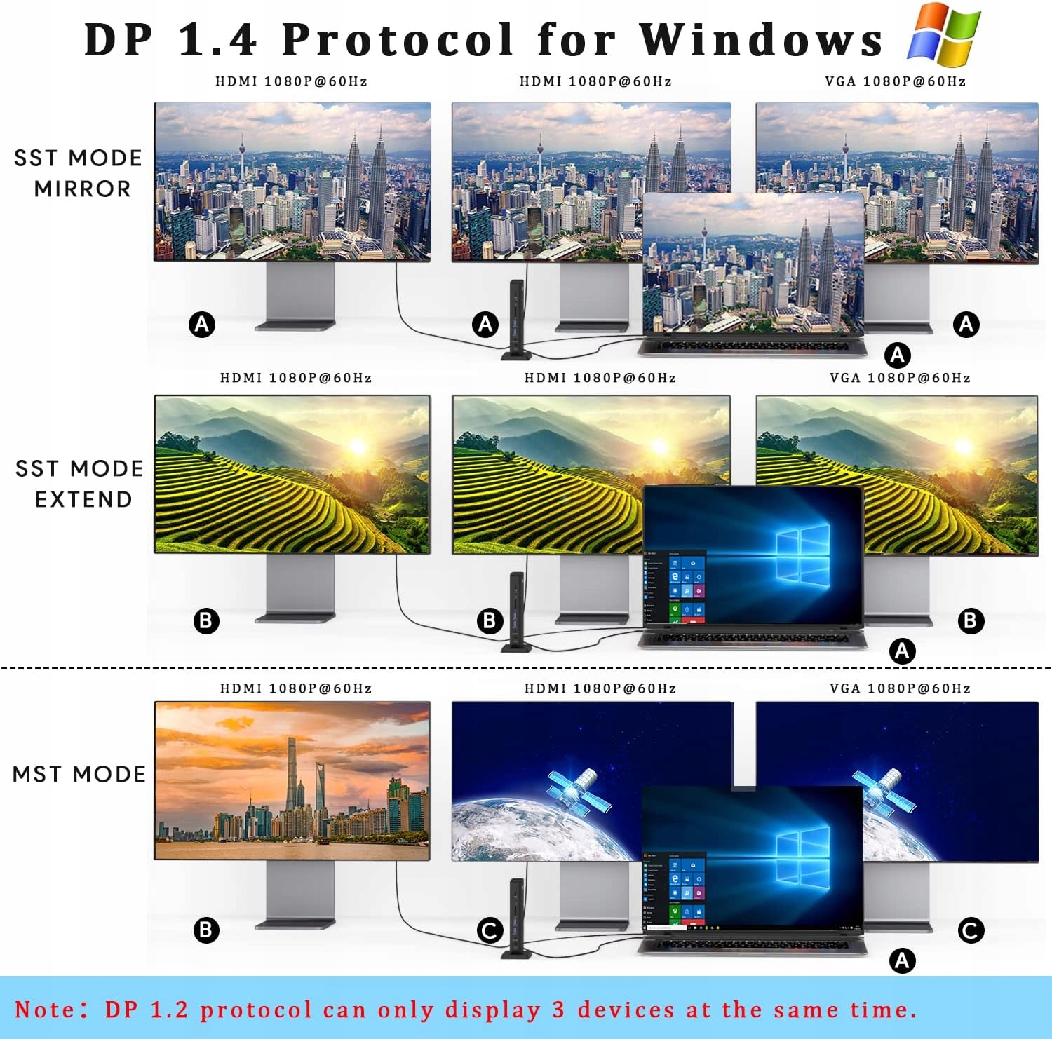 ➡️ Получите три независимых экрана с разрешением до 4K при 30 Гц (HDMI) и 1080p при 60 Гц (VGA). Идеально подходит для многозадачности, дизайна, презентаций и игр.