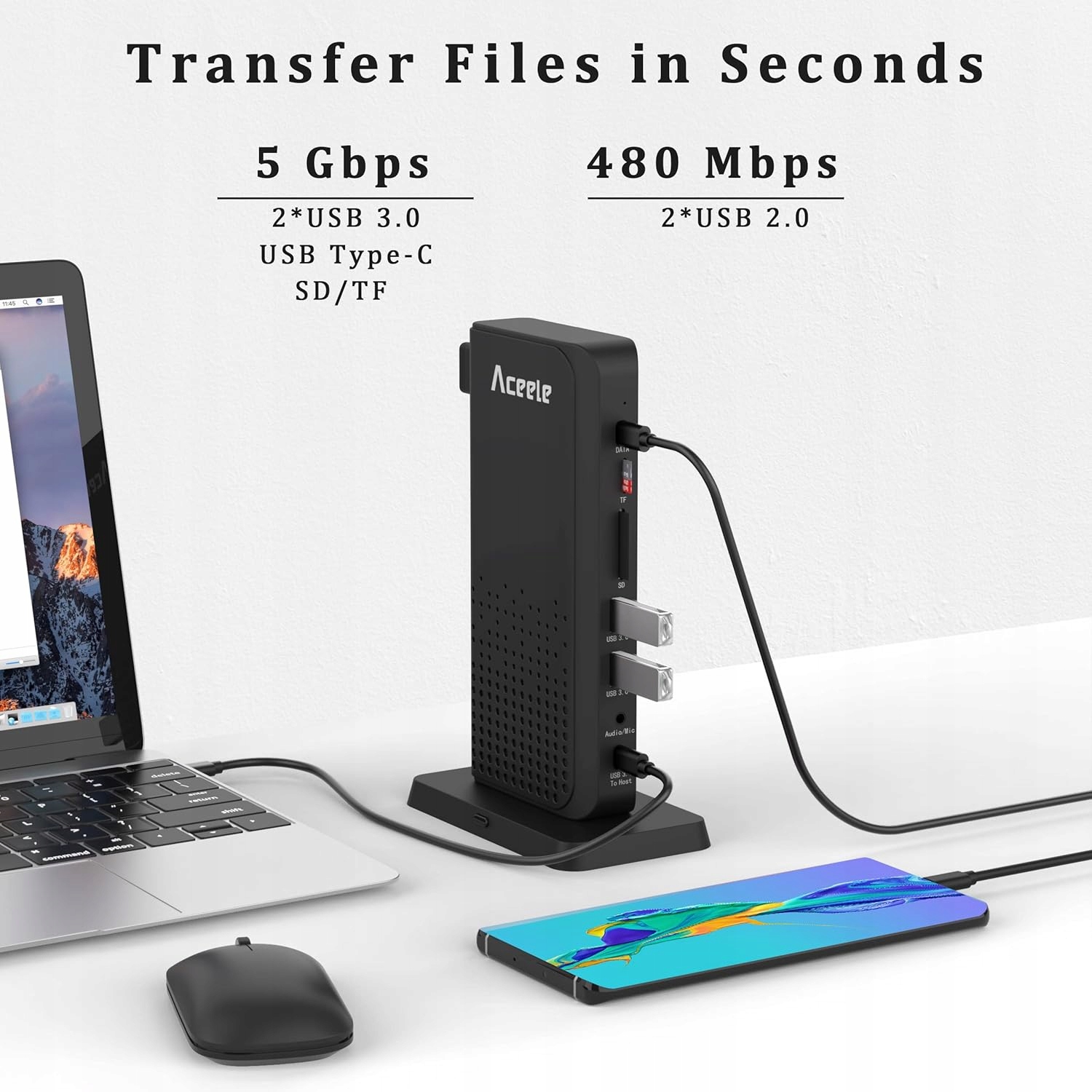 ➡️ Расширьте возможности своего ноутбука с помощью Aceele USB-C Hub 15 в 1! Этот многопортовый адаптер позволяет подключать несколько устройств одновременно. Он идеально подходит для MacBook Pro/Air, Dell XPS, HP, Surface, Lenovo и других компьютеров с портом Thunderbolt 3 или портом DP ALT MODE.