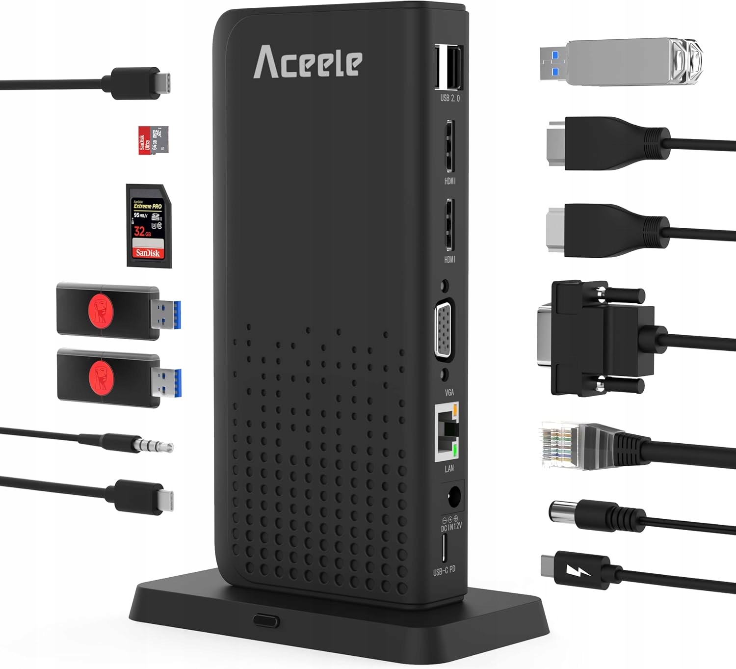 ДОК-СТАНЦИЯ ACEELE 15-В-1 ДЛЯ НОУТБУКА USB RJ45 HDMI USB-C VGA SD
