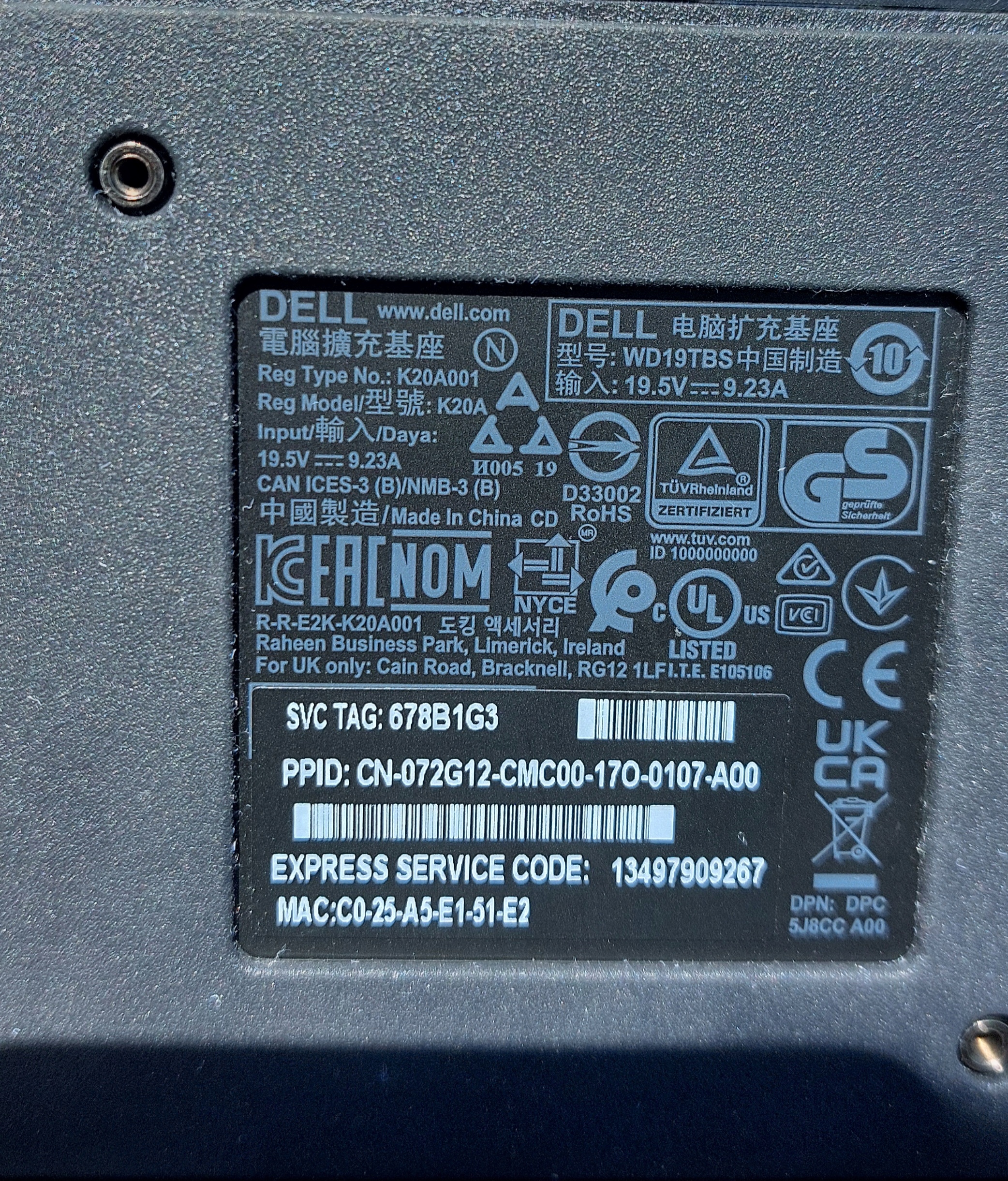 ДОКК-СТАНЦІЯ DELL WD19TBS USB-C + ОРИГІНАЛЬНИЙ БЛОК ЖИВЛЕННЯ DELL 180 Вт