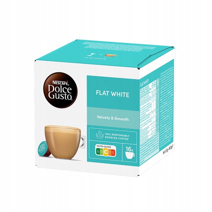 Flat White от Nescafé Dolce Gusto – настоящее лакомство для любителей кофе с молоком, гармонично сочетающее в себе глубину эспрессо со сливочной консистенцией молока.