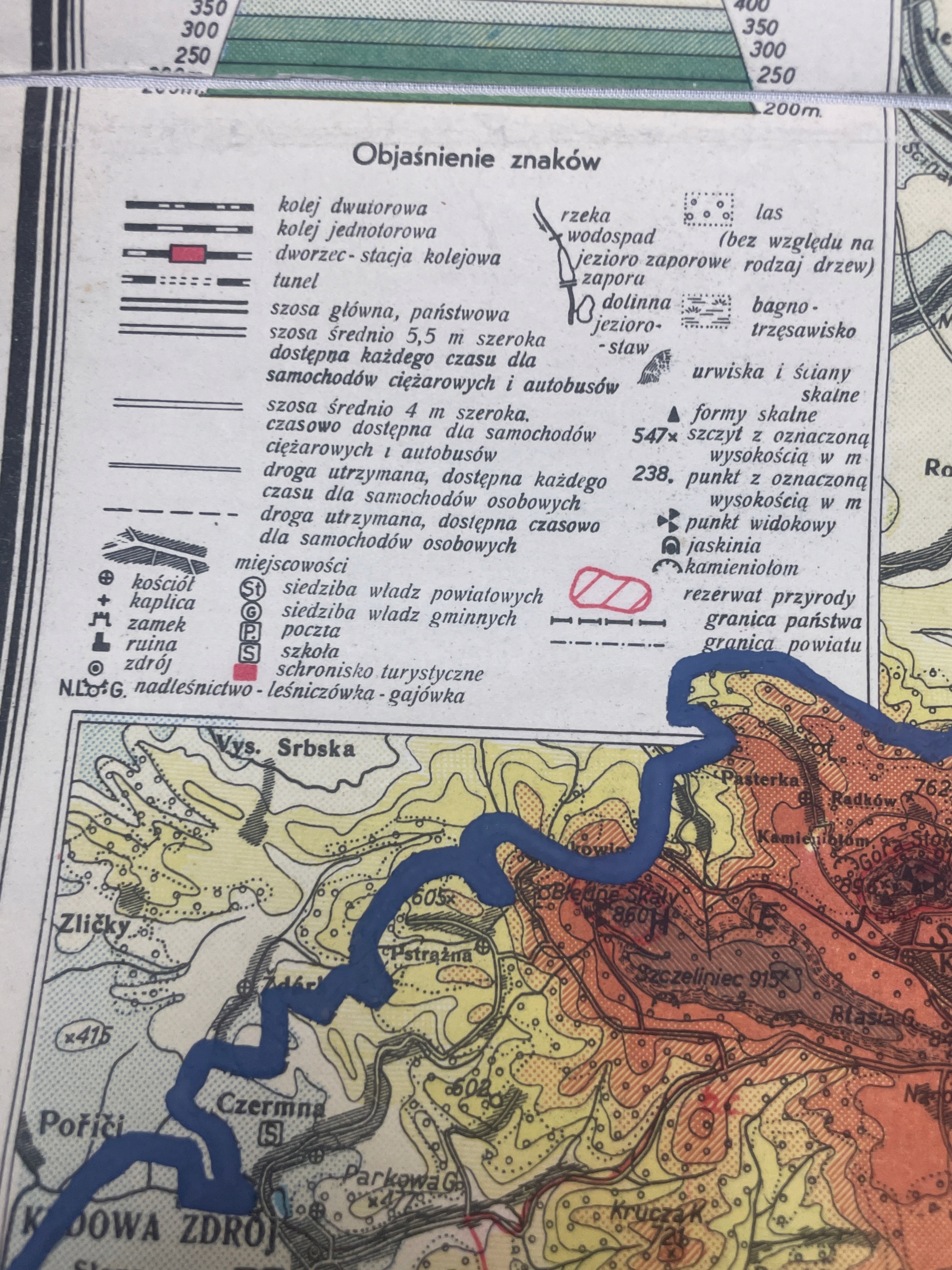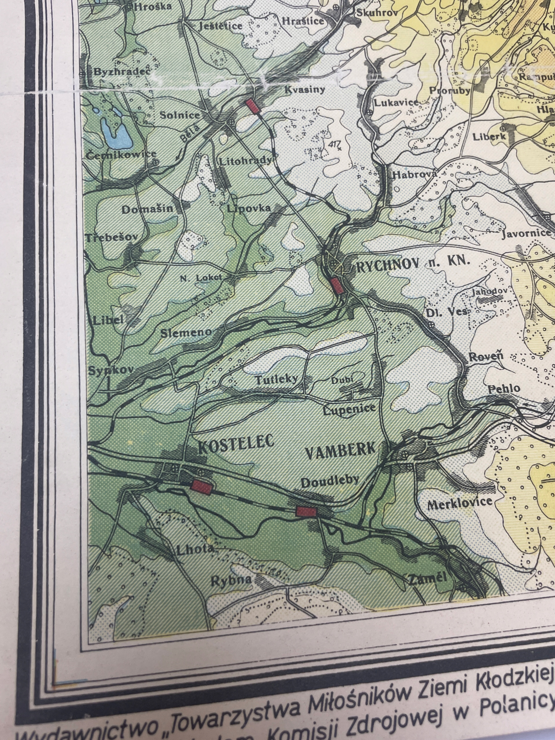 Долина Клодзко та прилеглі гори. Фізична карта, включаючи комунікації