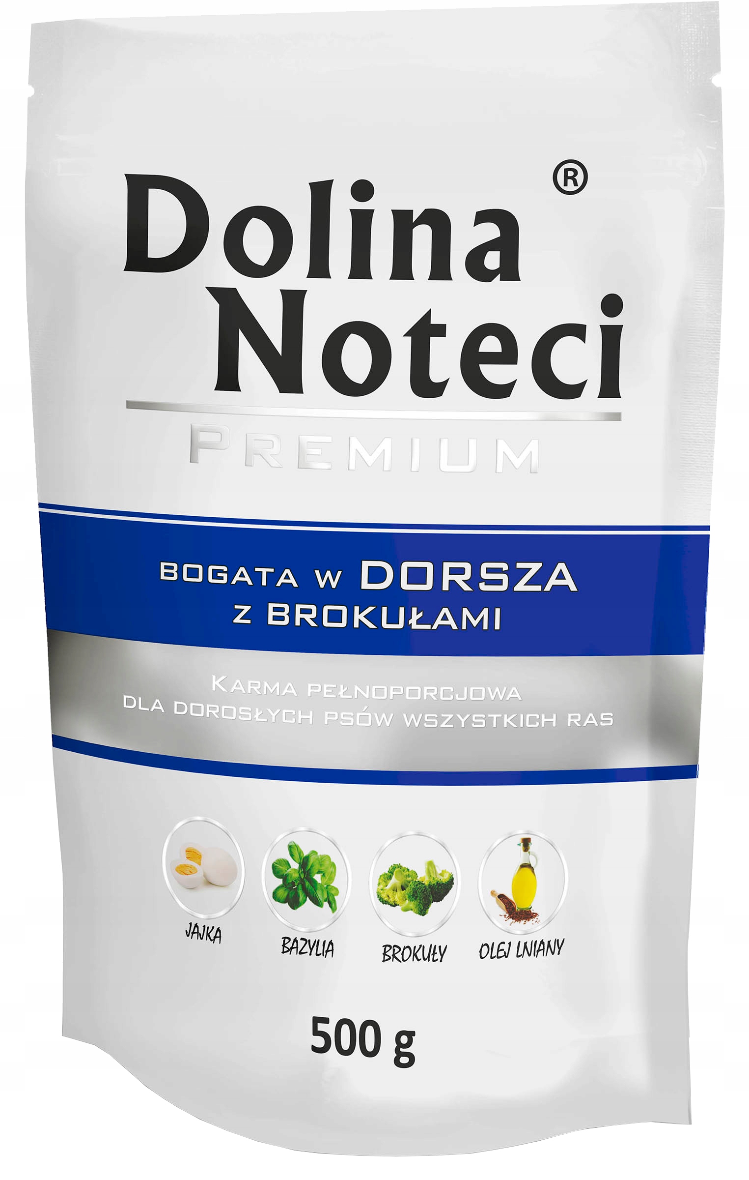 Влажный корм для собак Dolina Noteci Премиум с треской и брокколи, пакетик 500 г