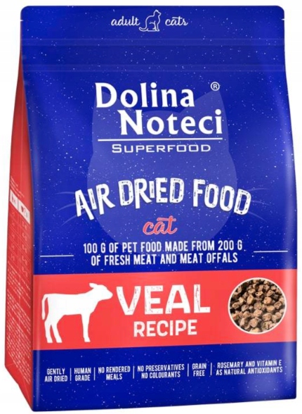 Karma Dolina Noteci SUPERFOOD Блюдо из телятины – это полноценный поддерживающий корм, предназначенный для взрослых кошек. Это блюдо исключительно легко усваивается благодаря составу, в основе которого лежит телятина – вид мяса, из которого исключительно хорошо усваиваются белки и жиры. Богатство ненасыщенных жирных кислот и аминокислот, содержащихся в корме, обеспечивает длительное и здоровое функционирование кошек.