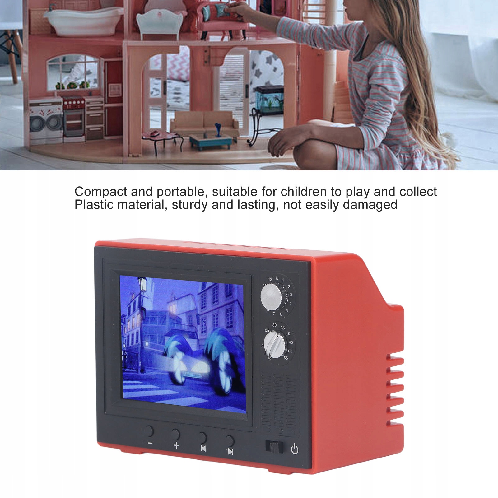 2. [Пластик] Этот старинный кукольный телевизор, изготовленный из пластика, прочен, его нелегко повредить, он идеально подходит как для игр, так и для коллекционирования.