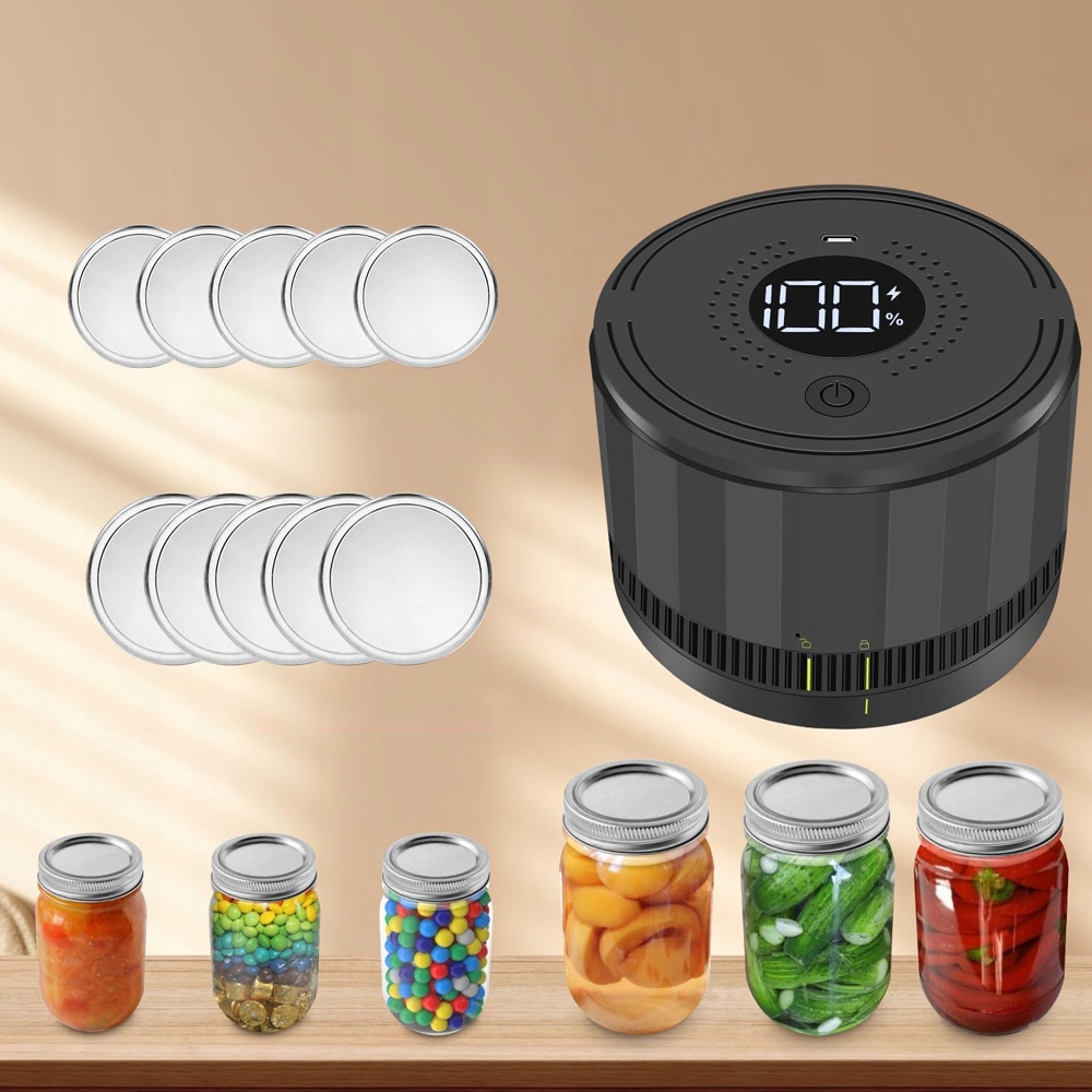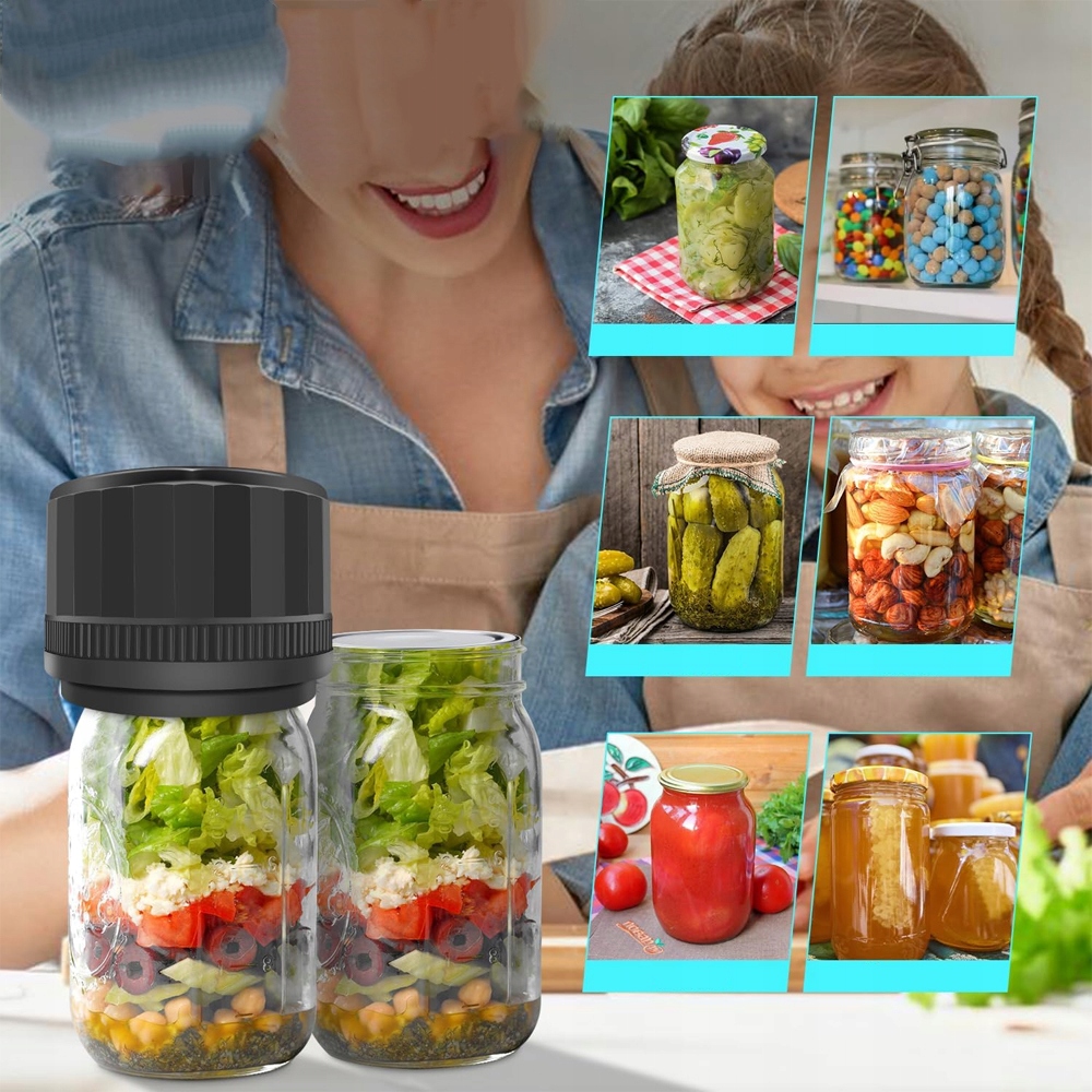 Электрический вакуумный упаковщик прост в использовании, не требует ручного нажатия; Поместите комплект для вакуумного упаковщика банки в центр и плотно прижмите его к крышке банки. Просто нажмите кнопку и подождите более 30 секунд. Это сэкономит время занятым домашним поварам.
