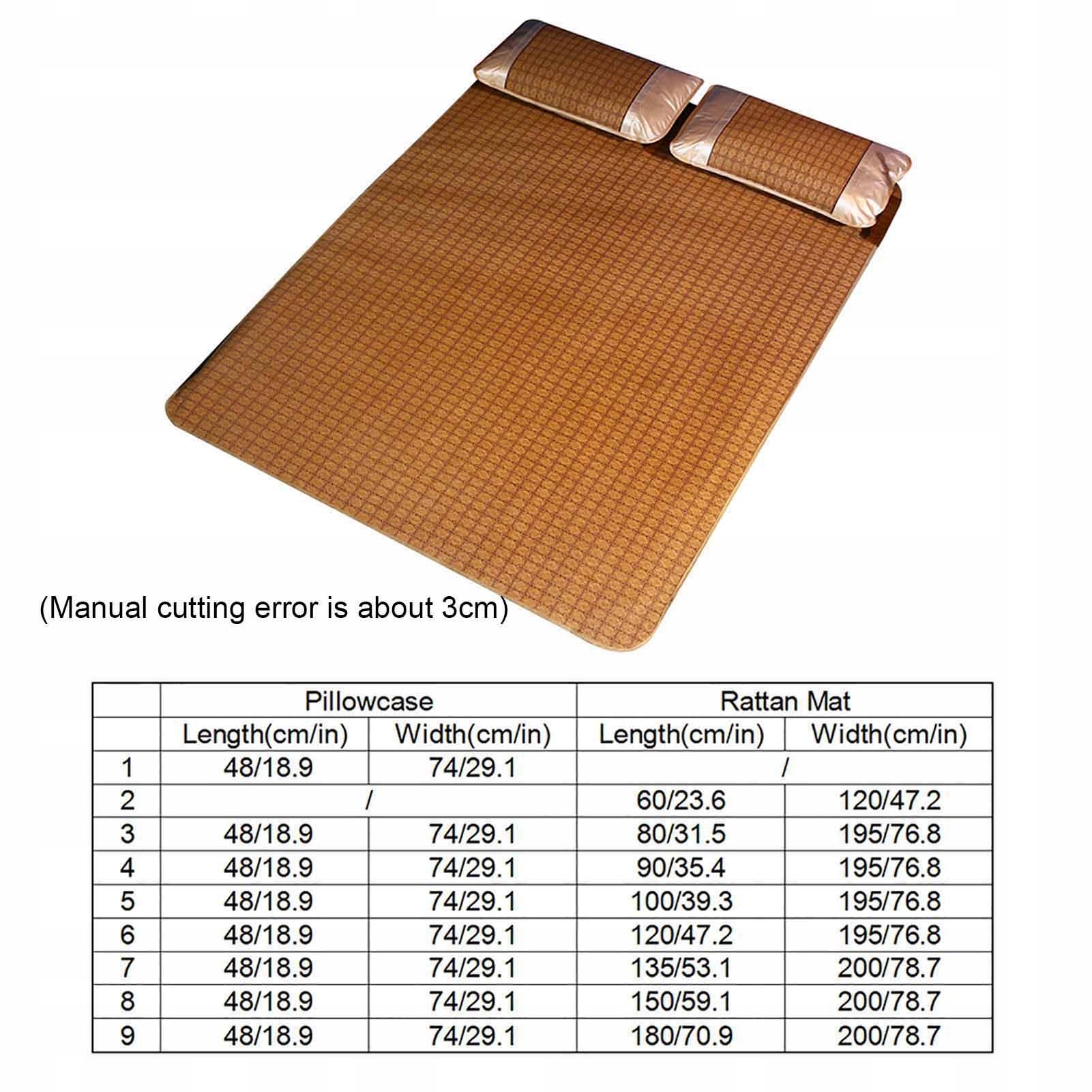 Размер коврика из ротанга: около 60*120 см/23,6*47,2 дюйма. 80*195 см/31,5*76,8 дюйма, 90*195 см/35,4*76,8 дюйма, 100*195 см/39,3*76,8 дюйма, 120*195 см/47,2*76,8 дюйма, 135*200 см/53,1*78,7 дюйма, 150* 200 см/59,1*78,7 дюйма, 180*200 см/70,9*78,7 дюйма (опционально)