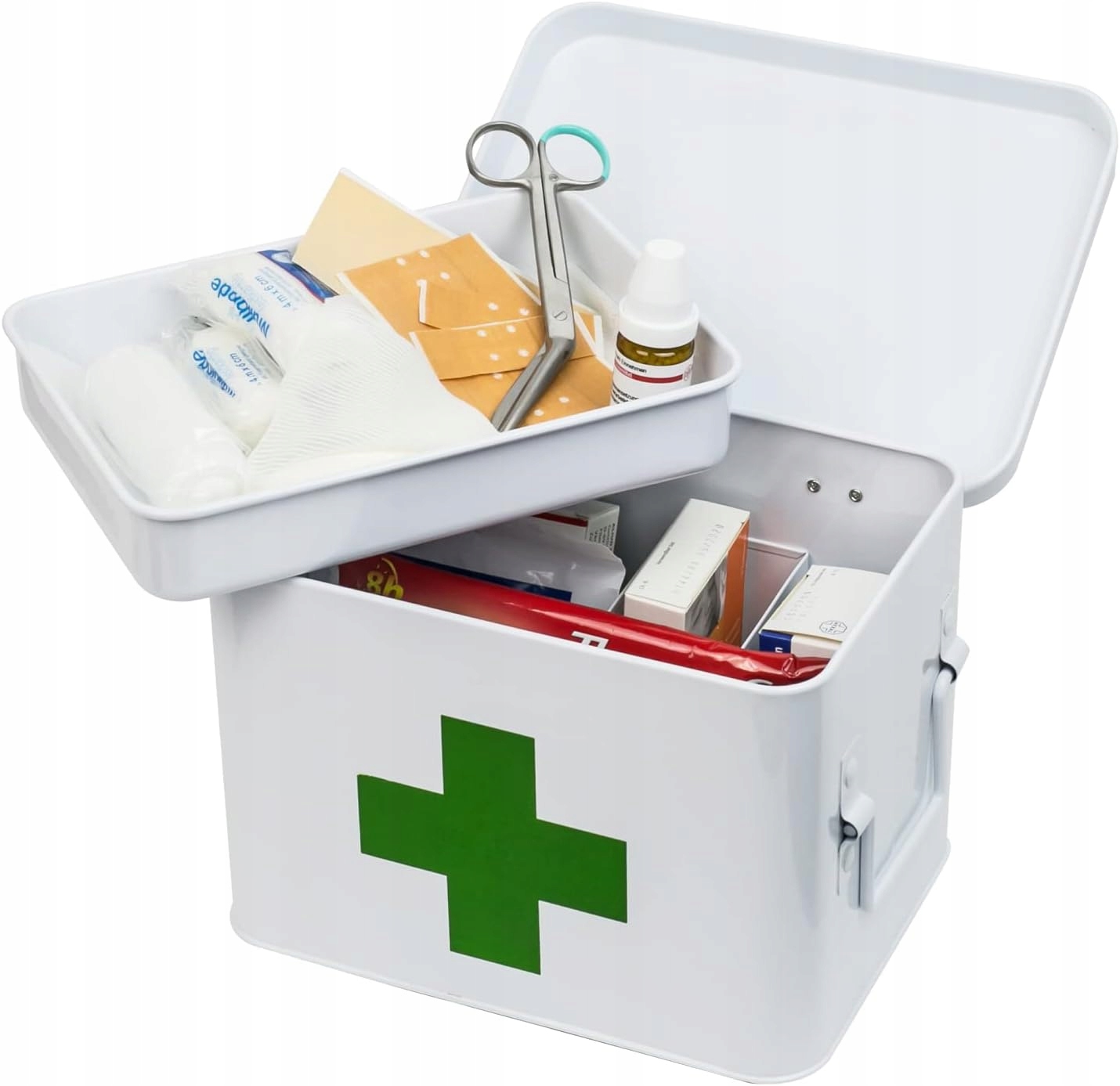 АПТЕЧКА ДОМАШНЯ З БІЛОГО МЕТАЛУ ДЛЯ ЗБЕРІГАННЯ ЛІКІВ