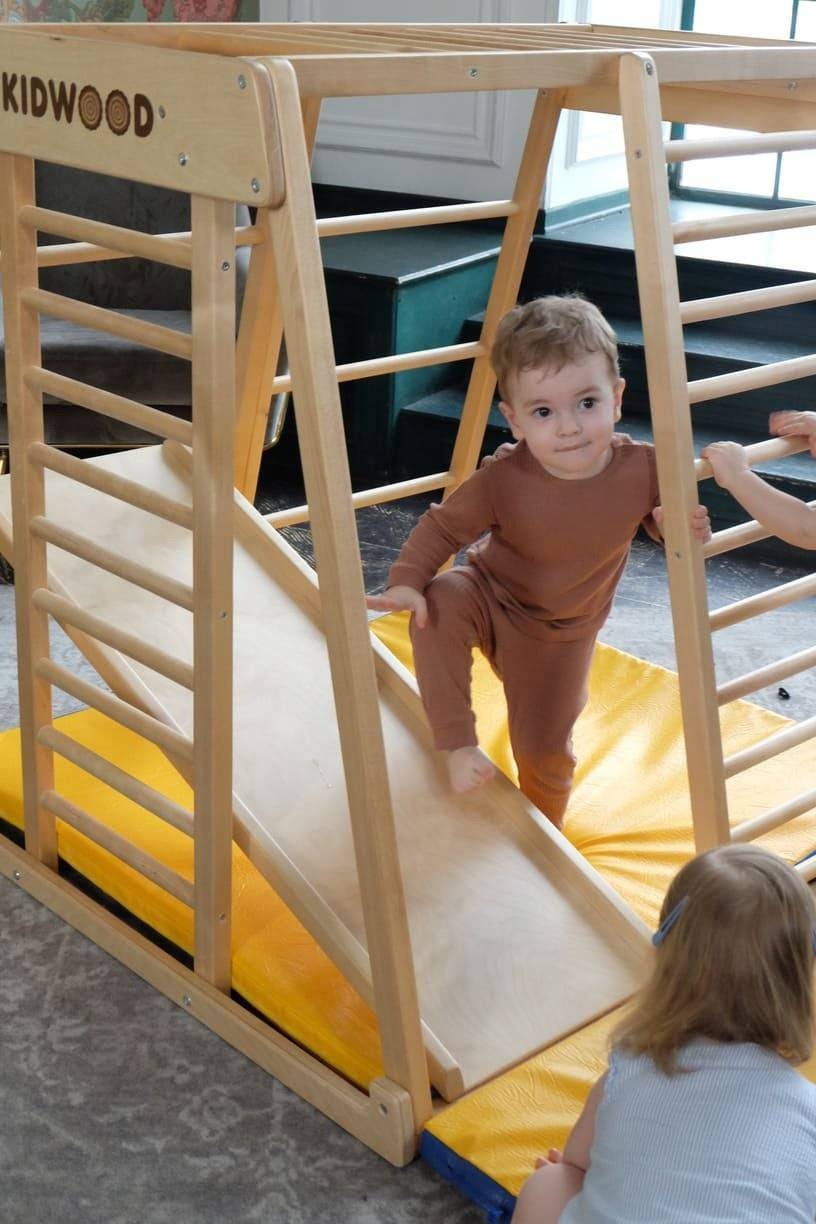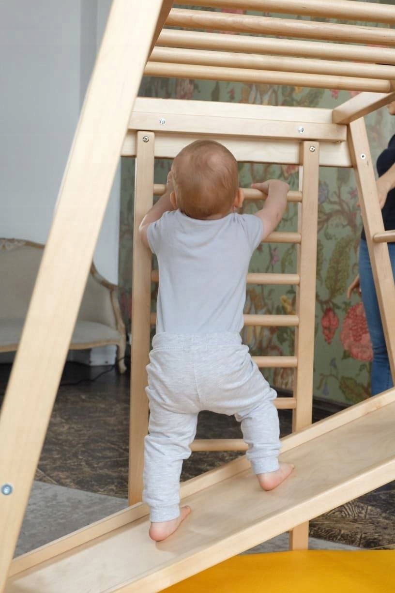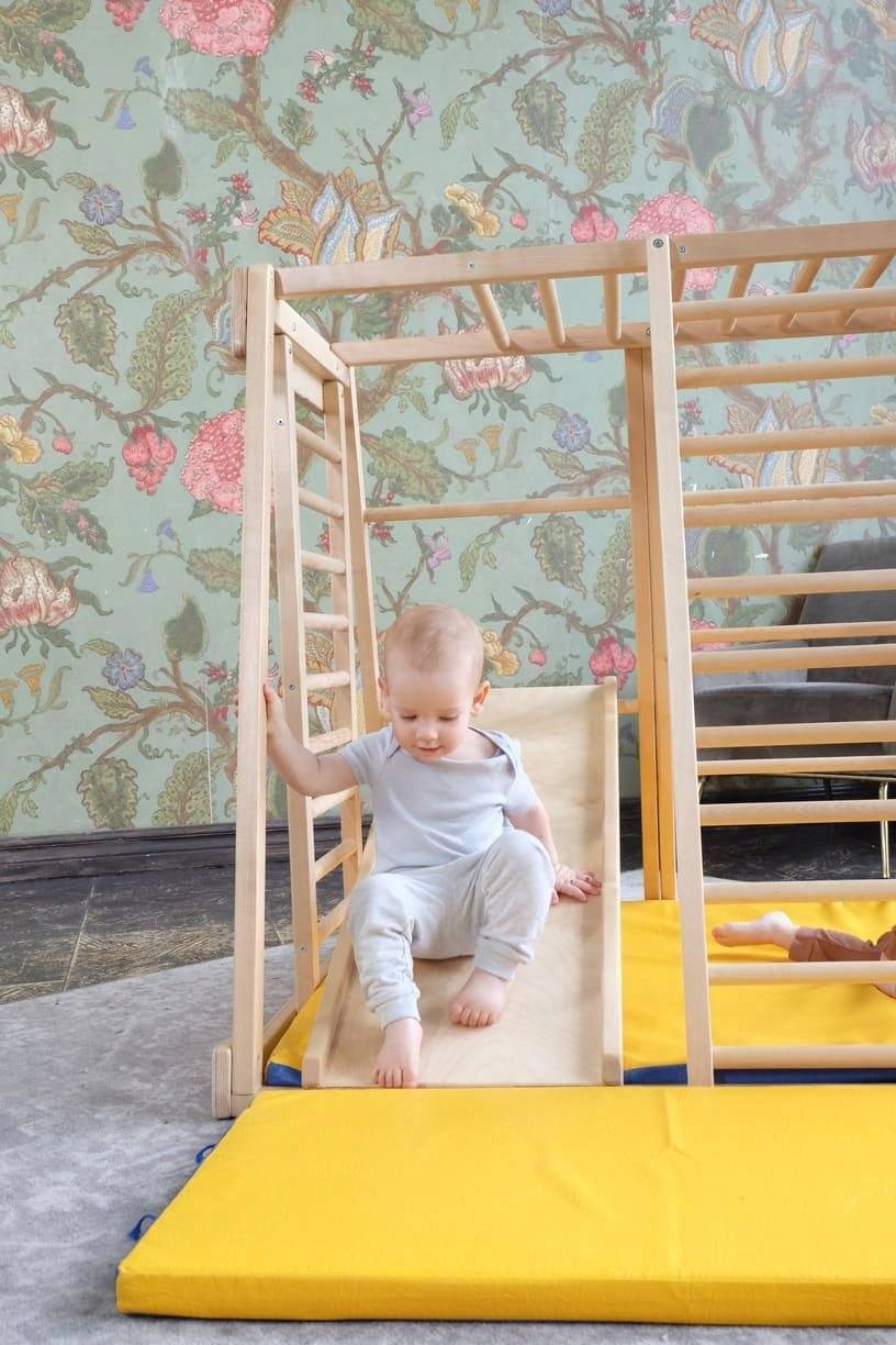 Домашняя горка для детей – это сплошное удовольствие! Но это еще не все: это еще и приключение, которое предлагает малышам множество упражнений и безопасных занятий. Устойчивая небольшая горка – прекрасное разнообразие развлечений, обеспечивающее не только улыбки, но и физическую активность. Деревянная домашняя горка, размещенная на перекладинах любой гимнастической лестницы, выполняет сразу несколько функций: доставляет удовольствие в качестве горки и является отличной доской для разминки позвоночника на лестнице. Это больше, чем просто развлечение – это приключение, сочетающее в себе развлечение с пользой для здоровья и развития детей!