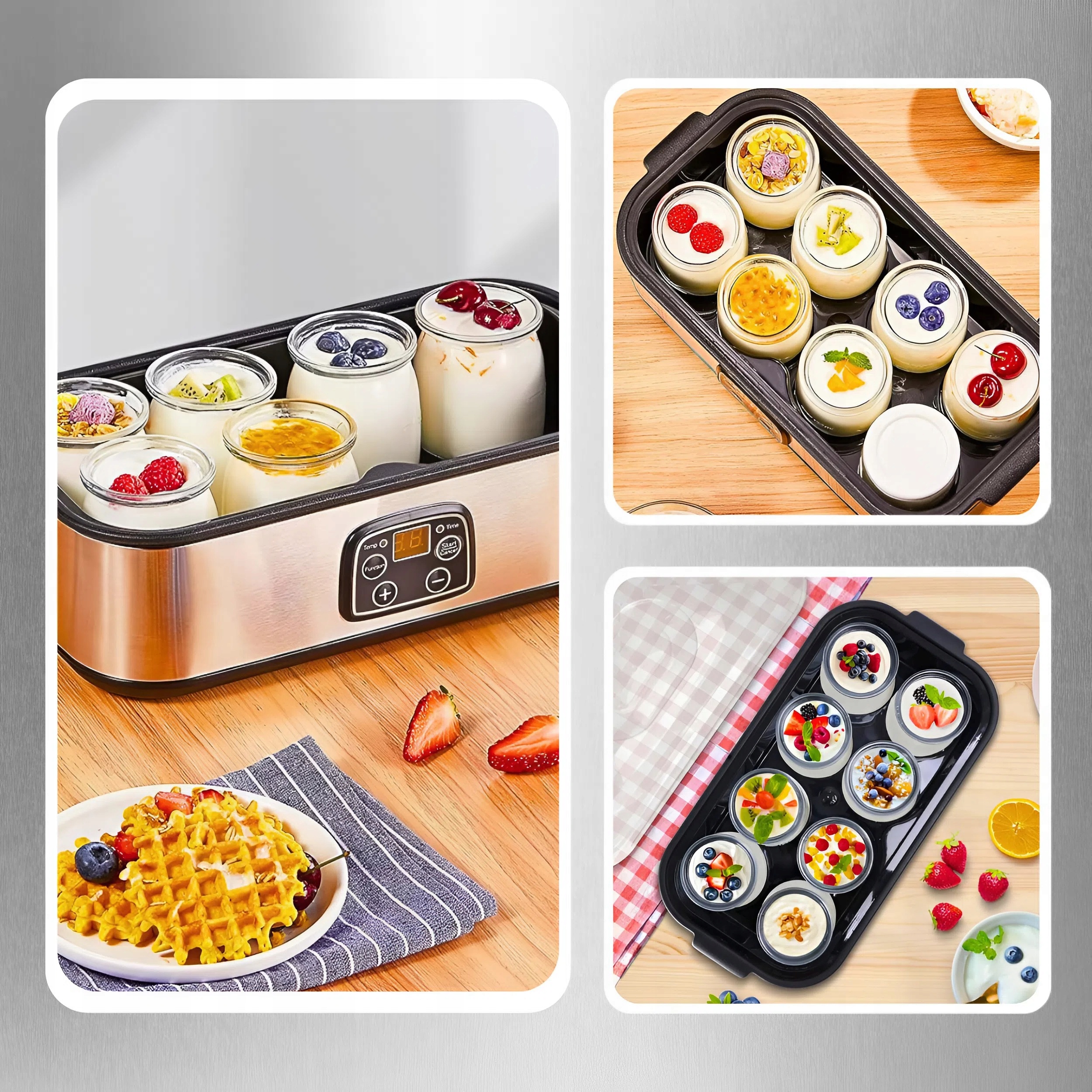 ➡️ ПОСТОЯННАЯ ТЕМПЕРАТУРА БРОЖЕНИЯ – система поддерживает равномерный, стабильный нагрев, что гарантирует идеальный процесс созревания йогурта. Благодаря этому консистенция всегда становится гладкой и кремовой.
