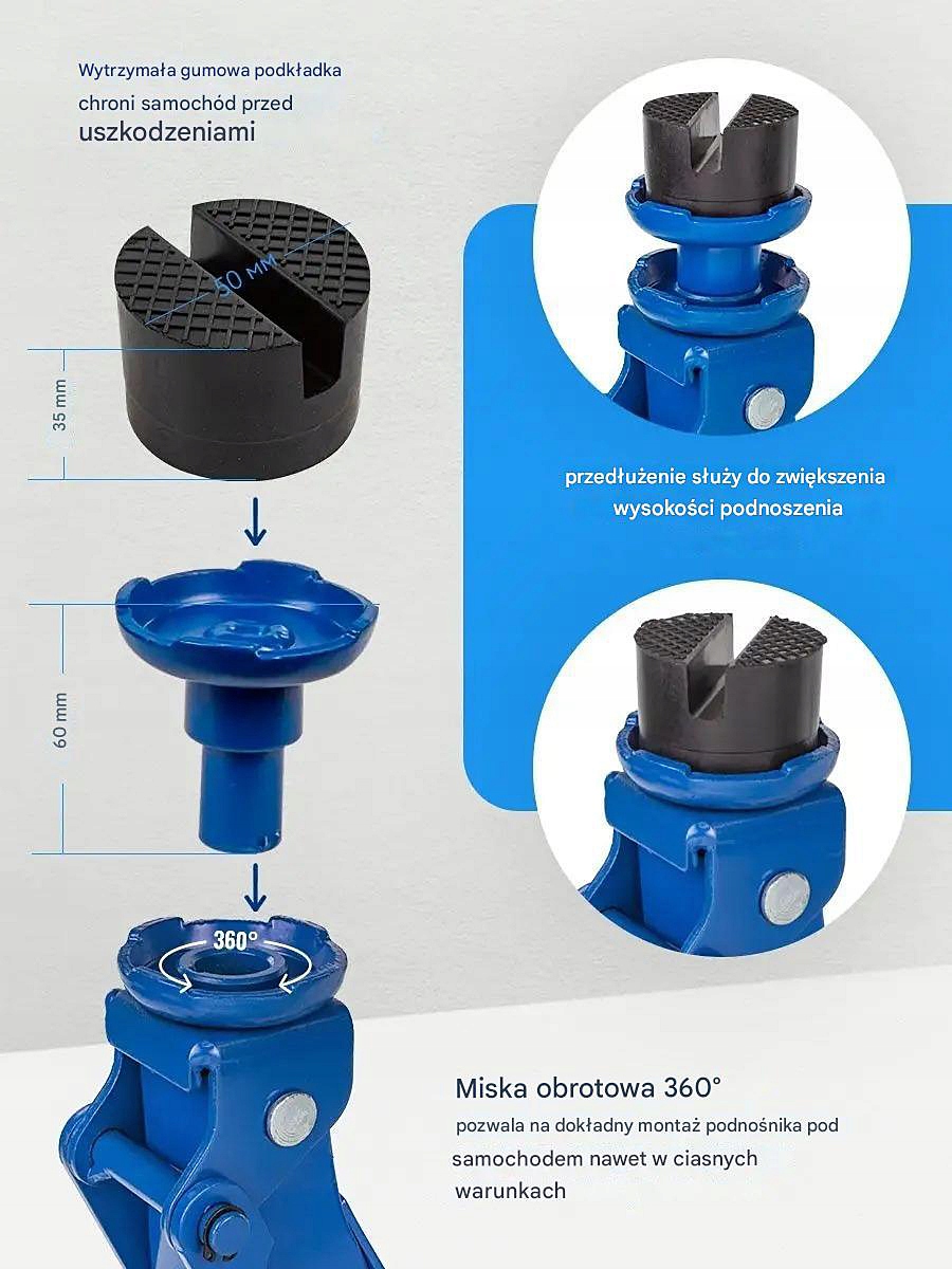 Это решение работает даже в максимальная нагрузка, которая имеет большое значение, например. при замене шин в поле или работе на неровной поверхности.