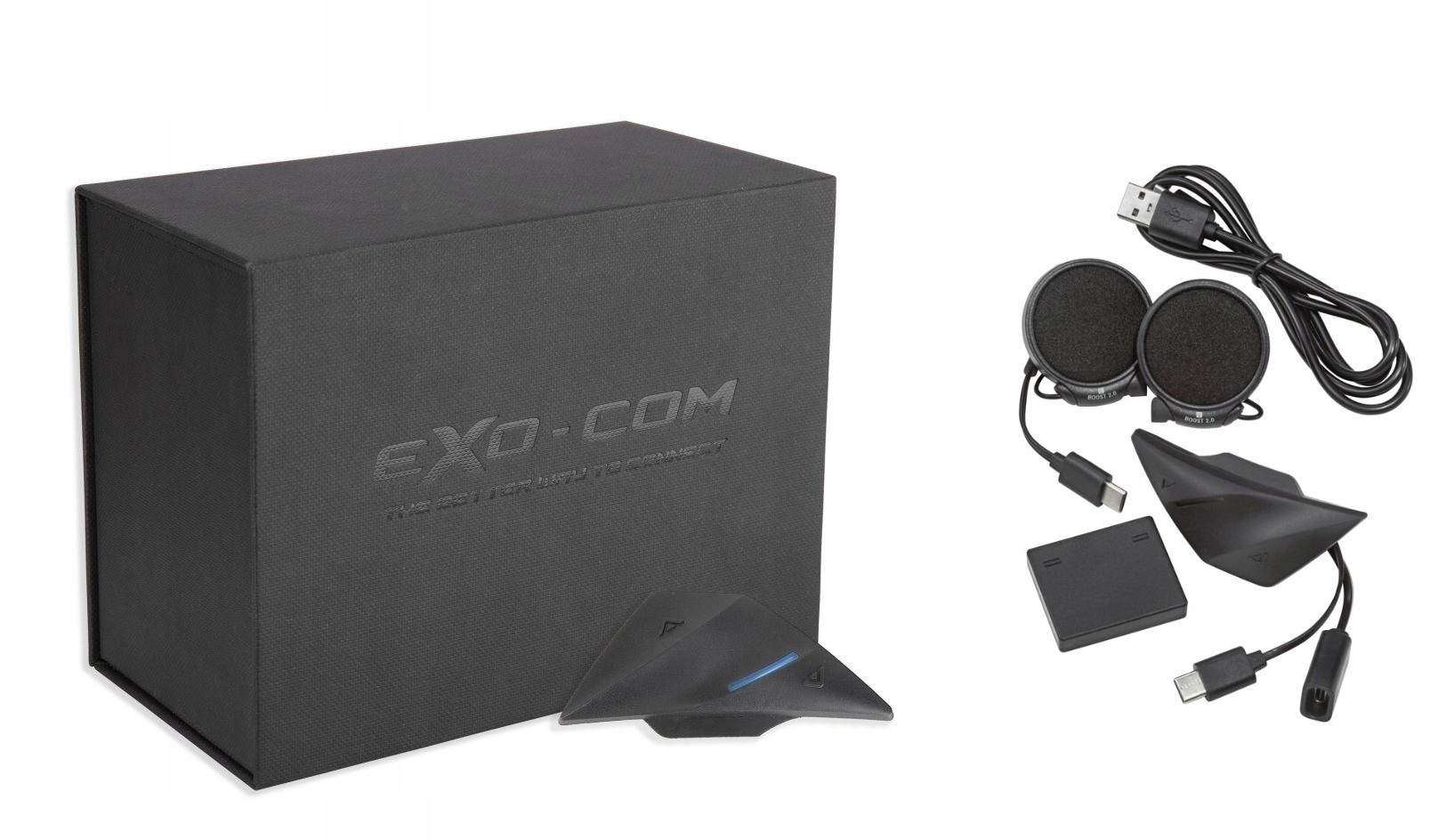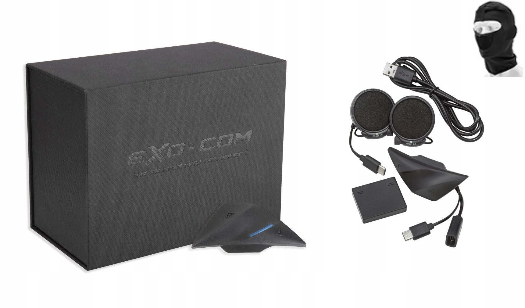 EXO-COM — это высококачественный продукт, сертифицированный по стандарту IPX5, водонепроницаемое устройство и поставляется с 2-летней гарантией. Незаметный, весит всего 78 г при размерах 80x35x15 мм.